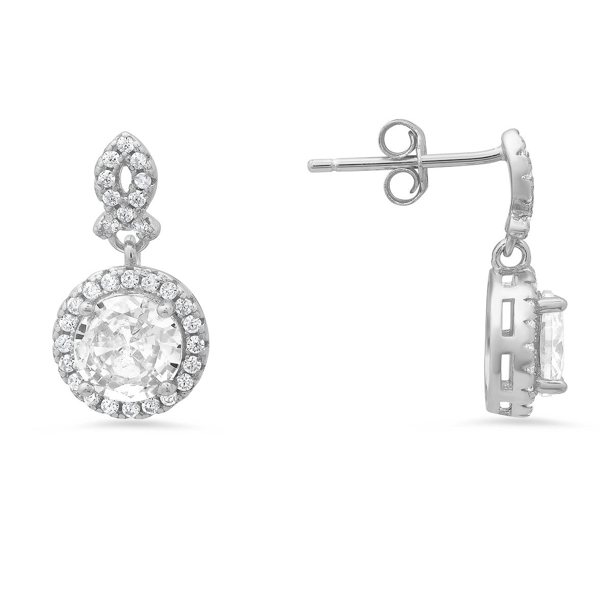 Sterling Silver Dangling Halo CZ Stud Earrings
