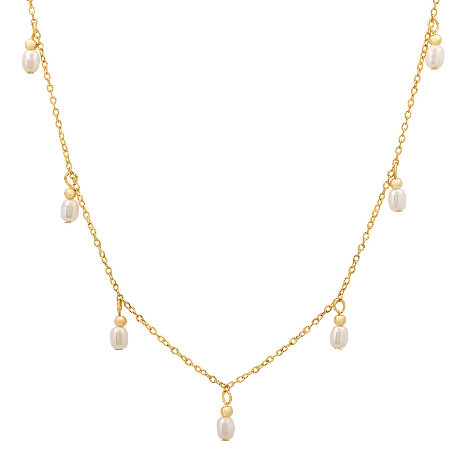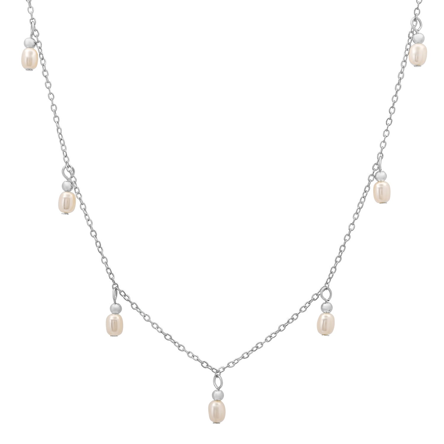 Sterling Silver Dangling Pearl Charm Choker Necklace
