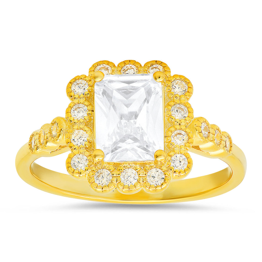 Sterling Silver Emerald-cut CZ Halo Floral Ring