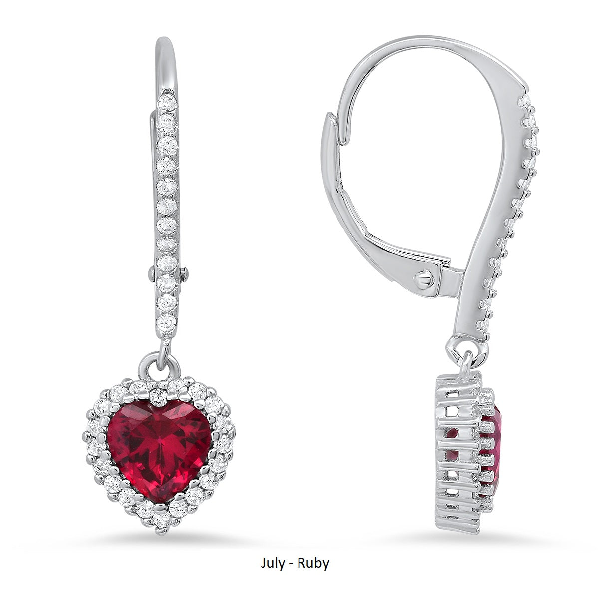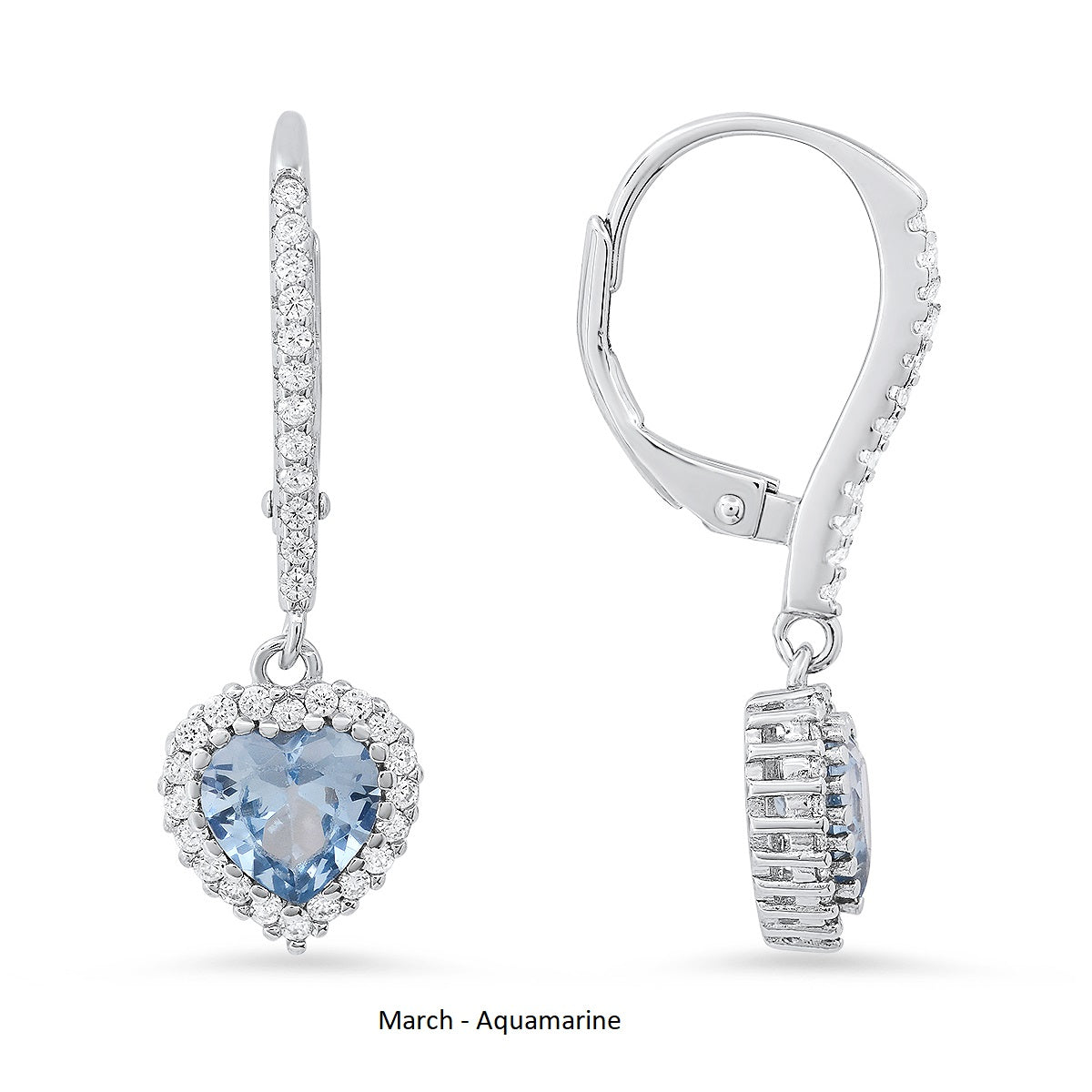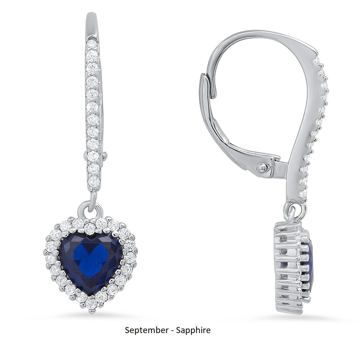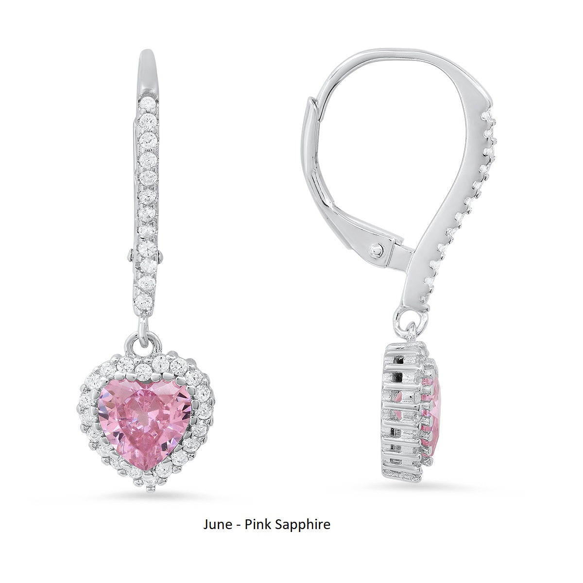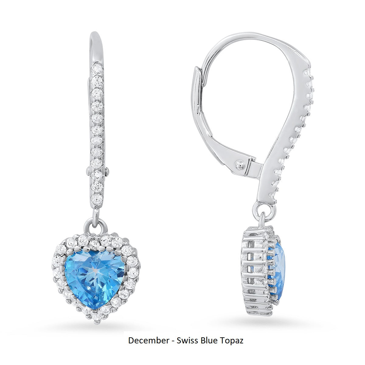 Sterling Silver Heart-cut Birthstone Halo Leverback Earrings