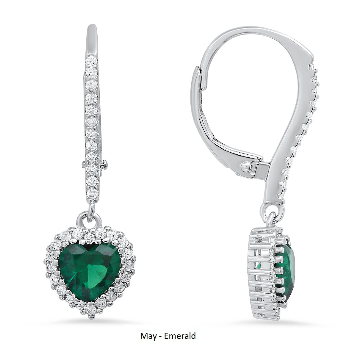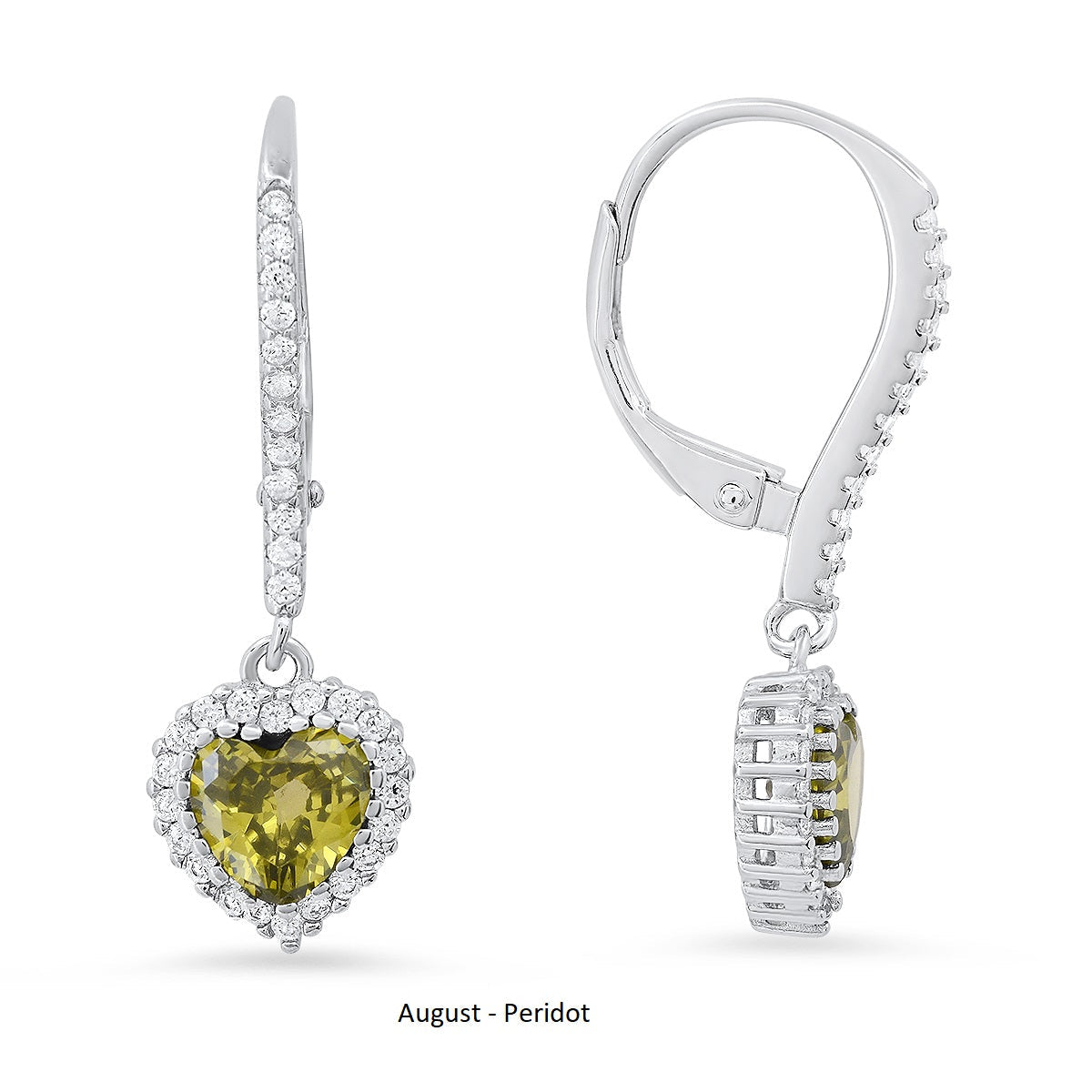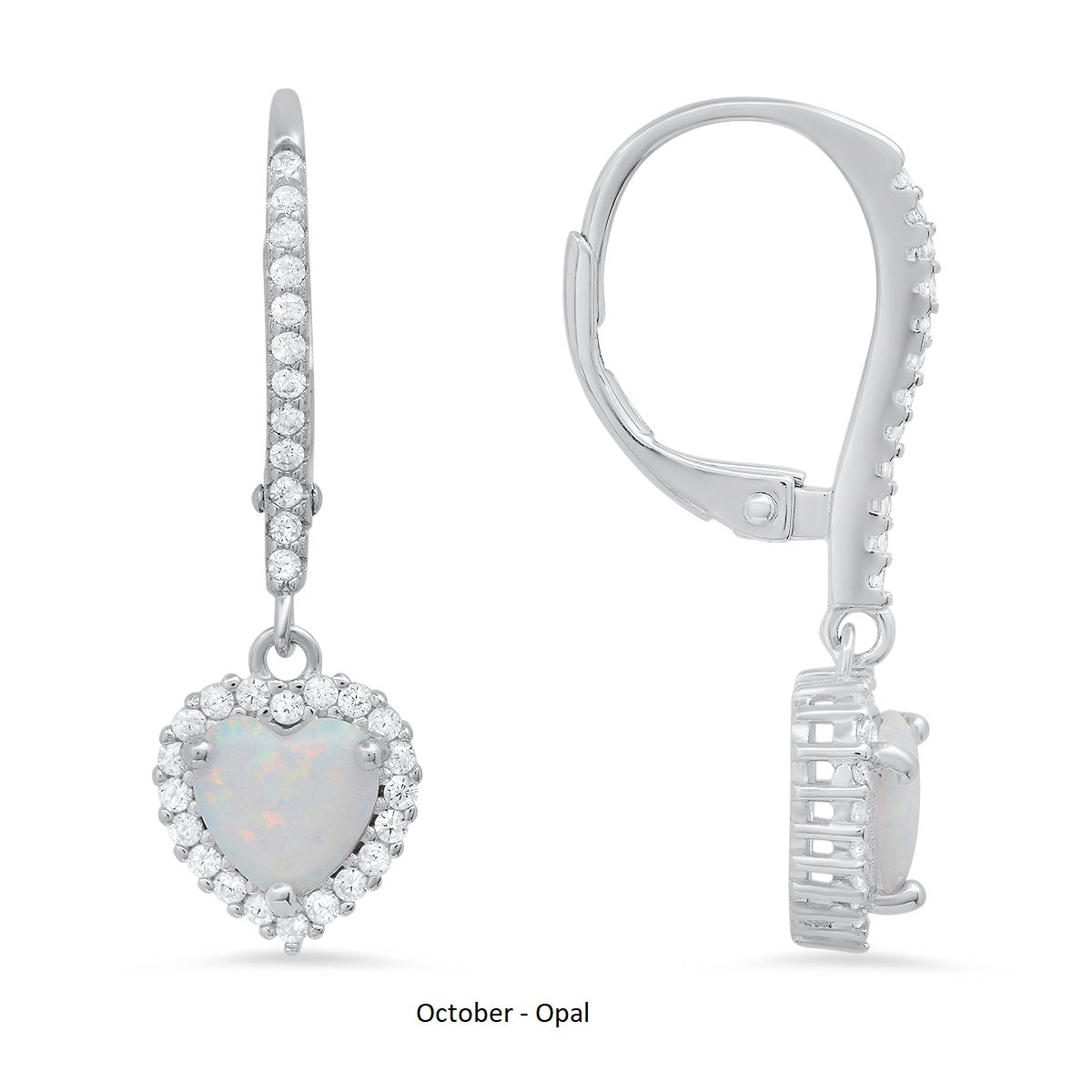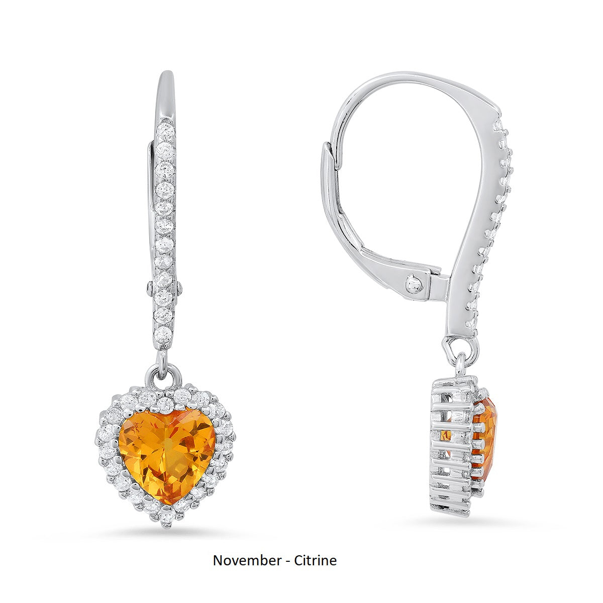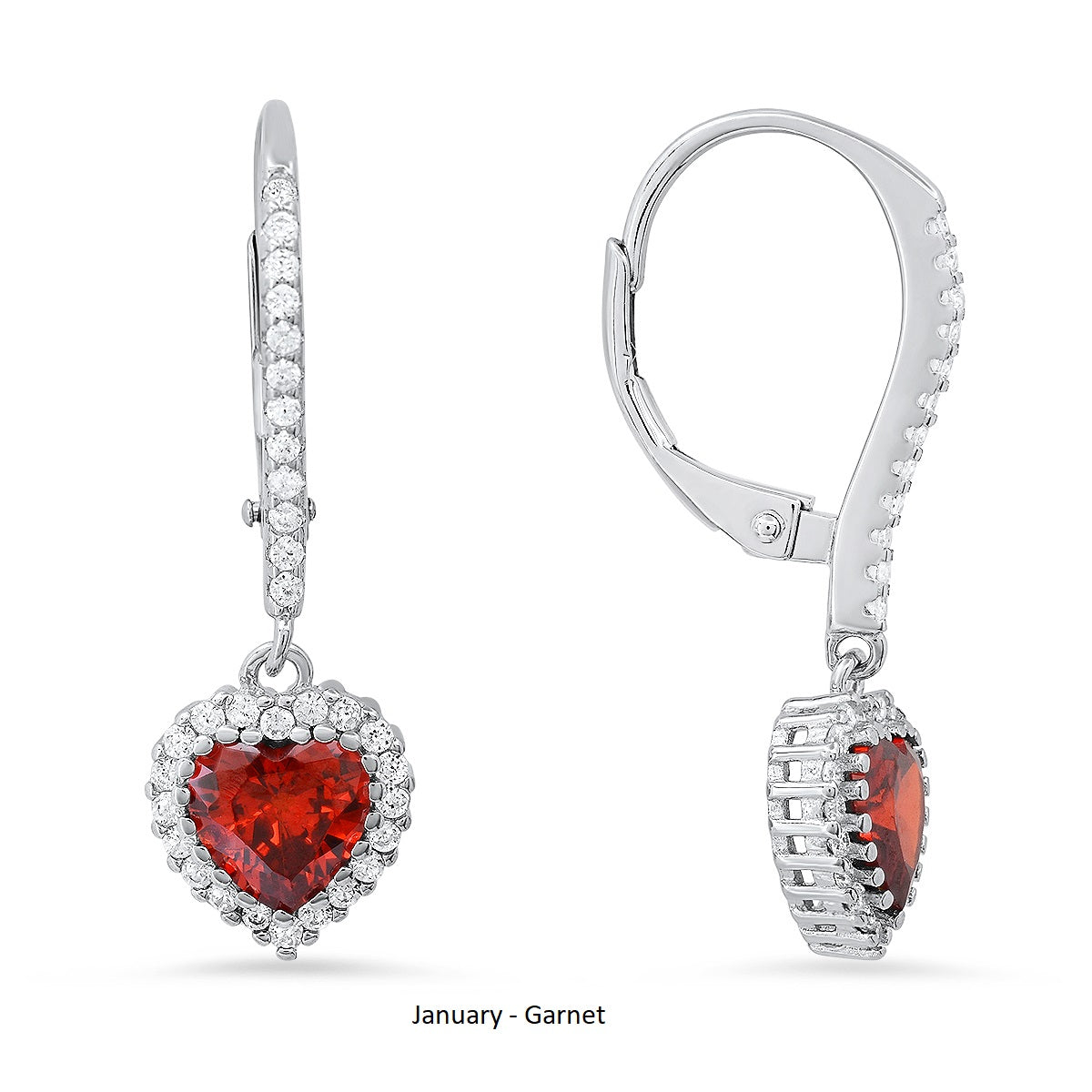 Sterling Silver Heart-cut Birthstone Halo Leverback Earrings