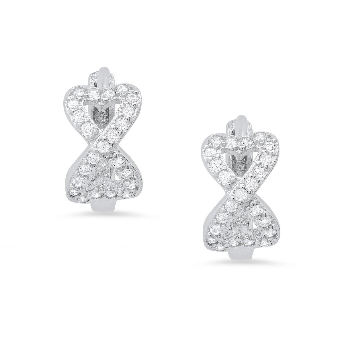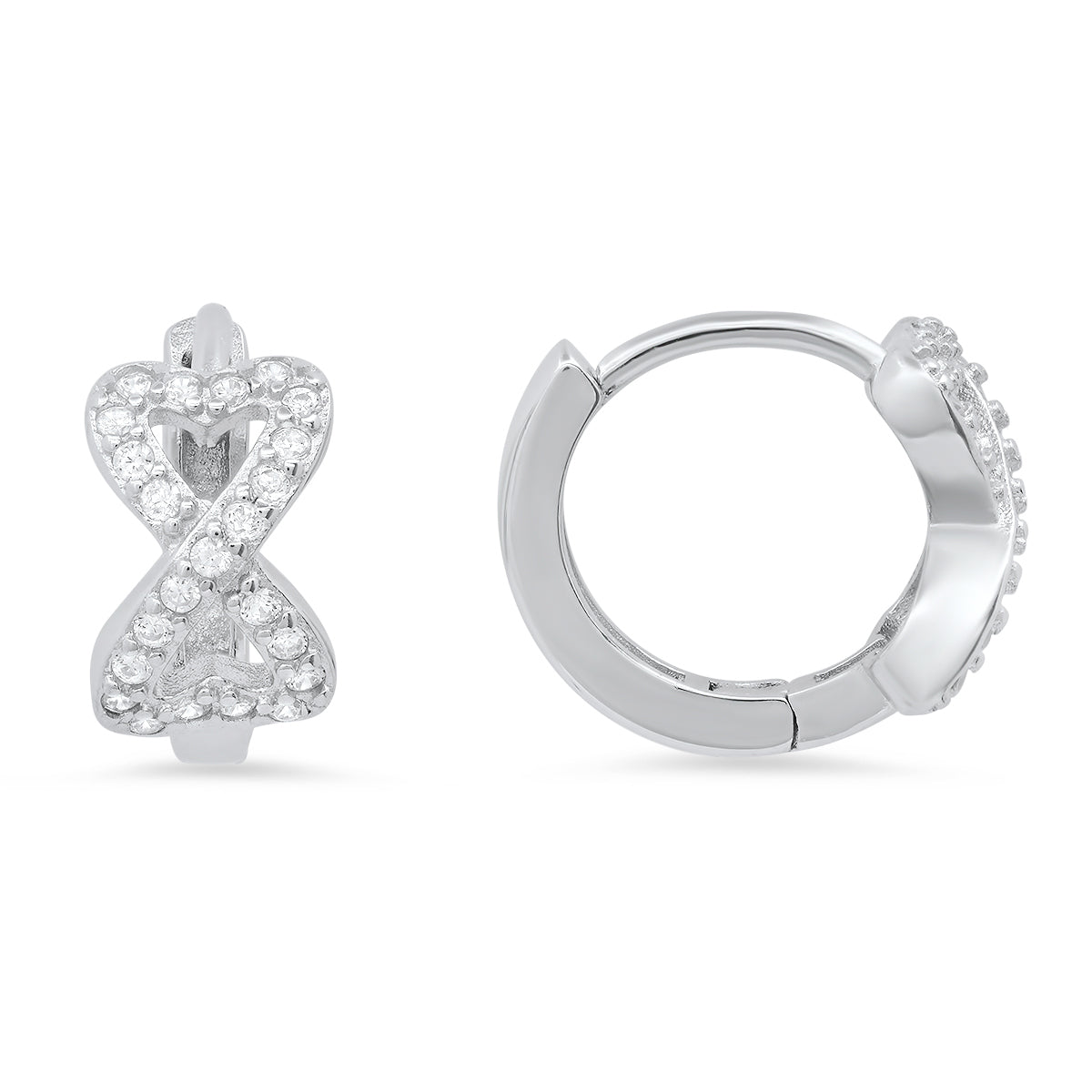 Sterling Silver Petite CZ Heart Infinity Huggy Hoop Earrings