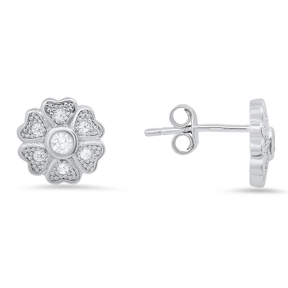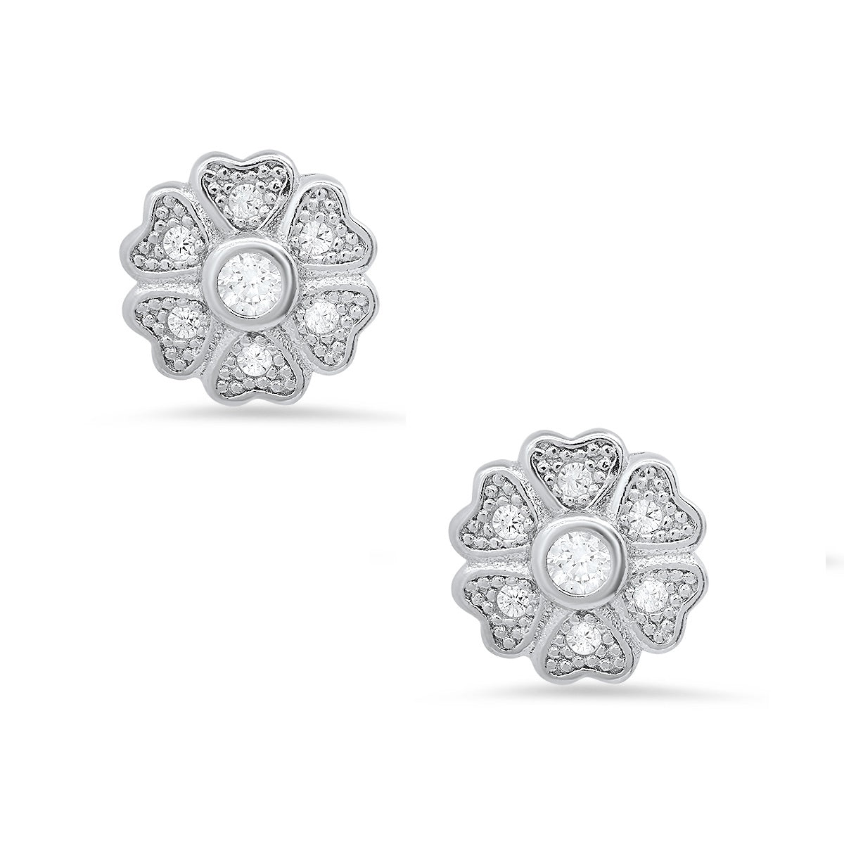 Sterling Silver Petite Heart Clover CZ Stud Earrings