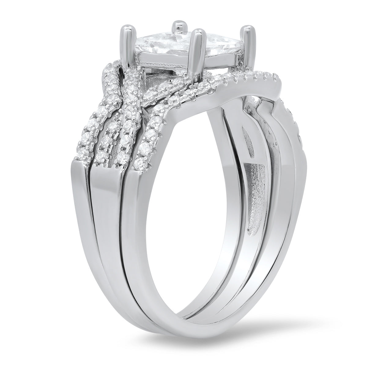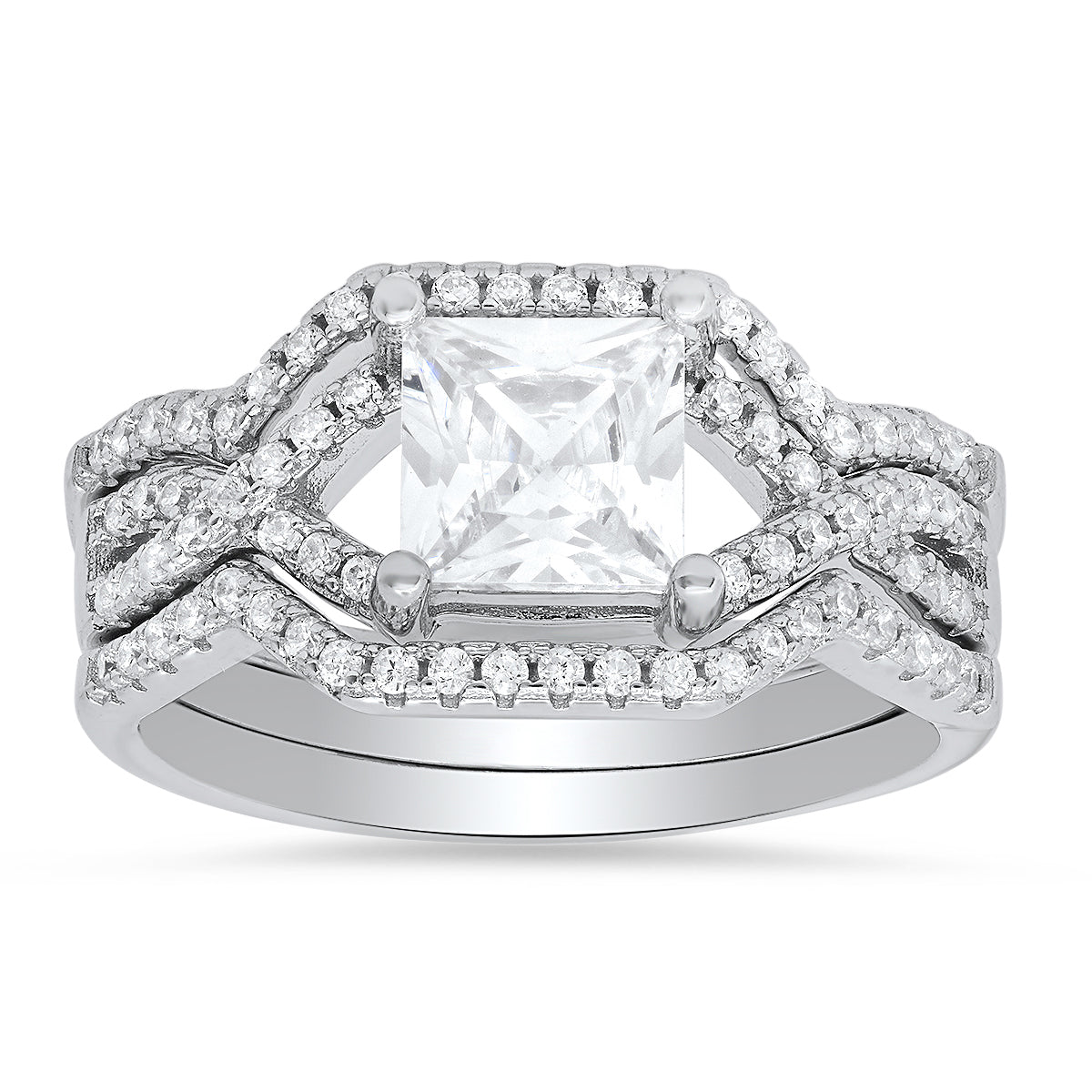 Sterling Silver Princess-cut 3pc Stackable CZ Ring Set