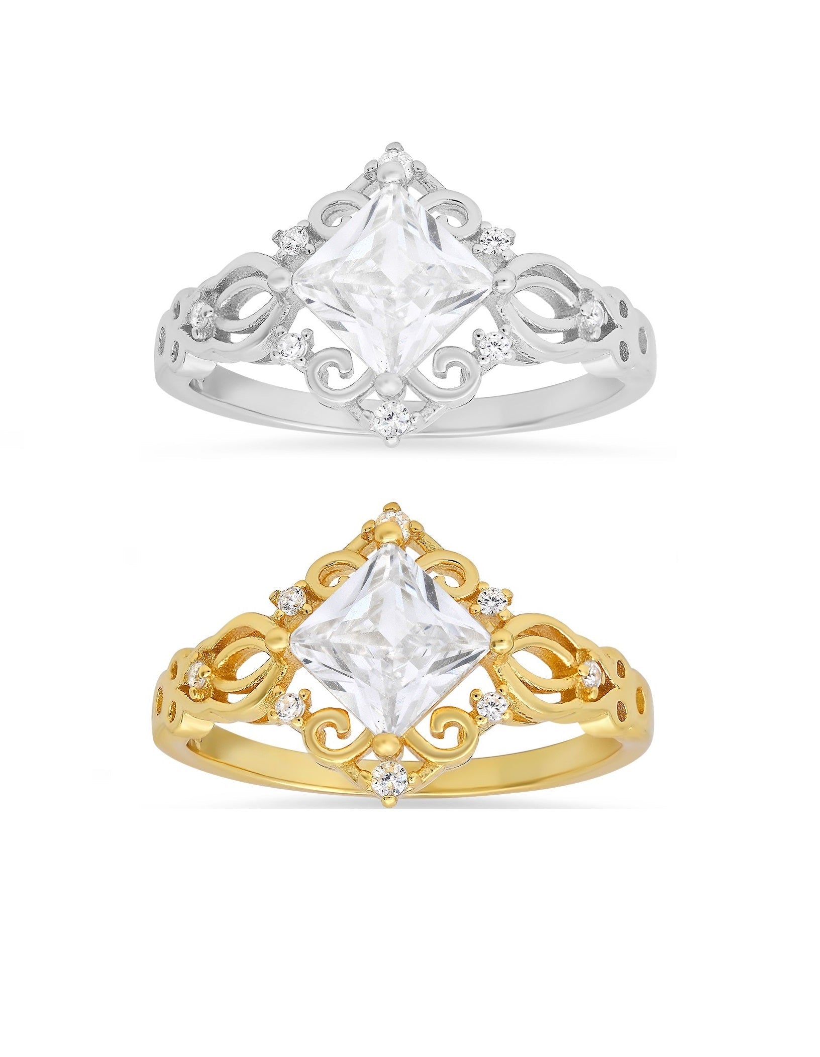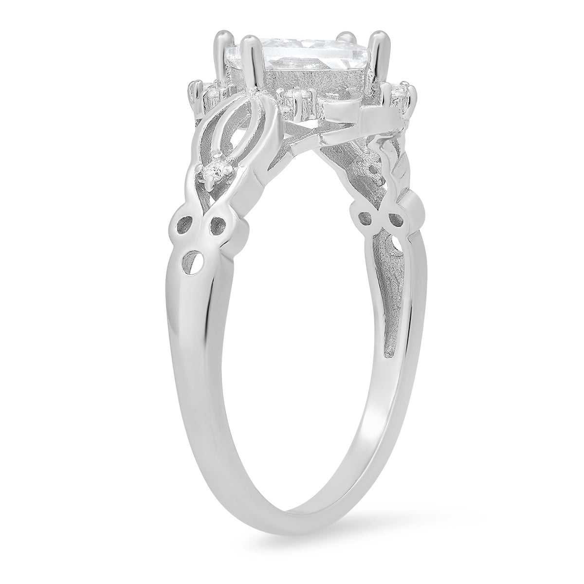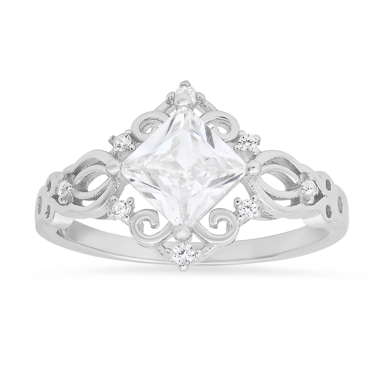 Sterling Silver Princess-cut Diamond CZ Filigree Ring