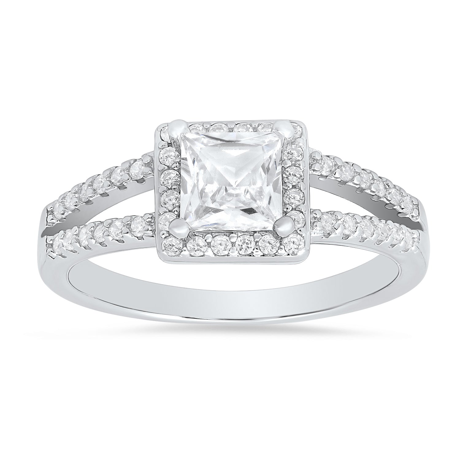 Sterling Silver Princess-cut Halo CZ Ring