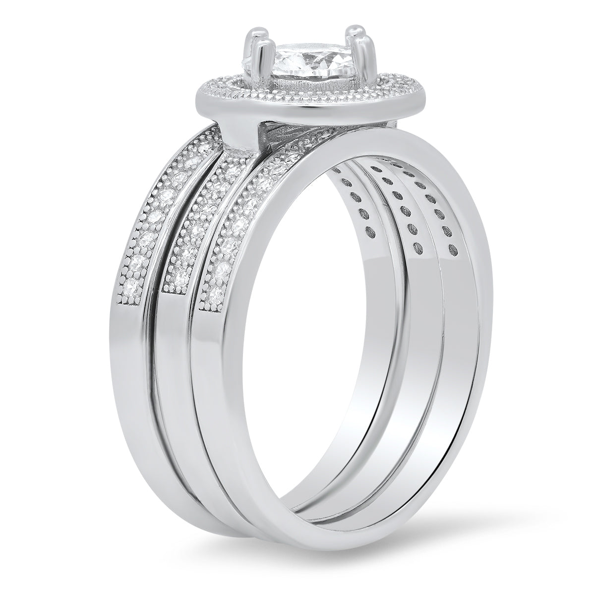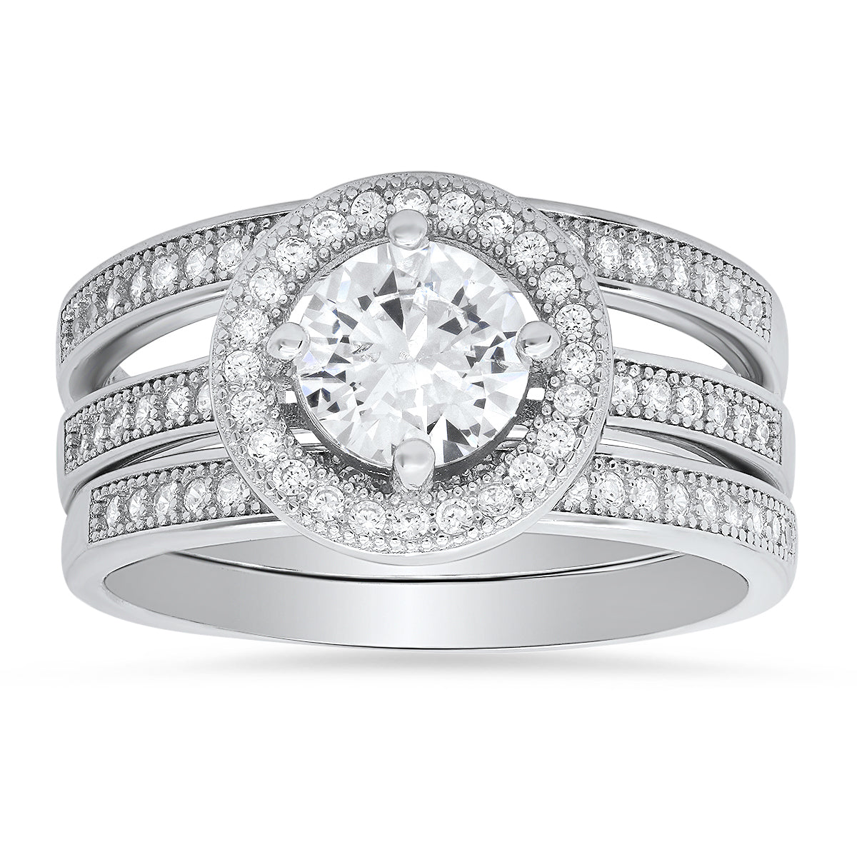 Sterling Silver Round-cut Halo 3pc Stackable CZ Ring Set