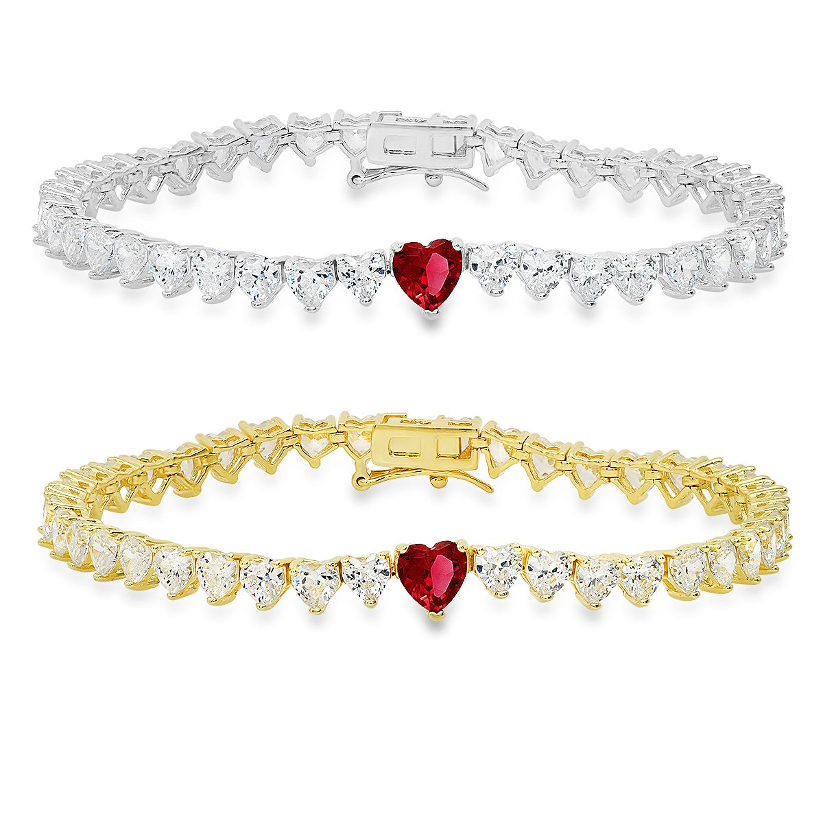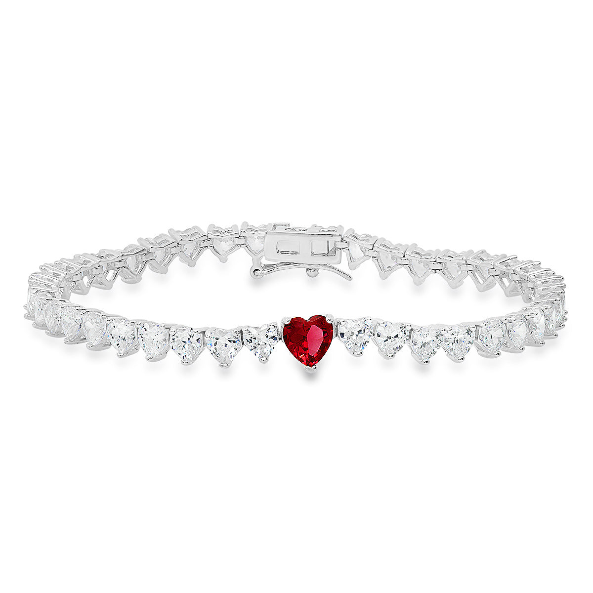 Sterling Silver Ruby CZ Heart-cut Tennis Bracelet