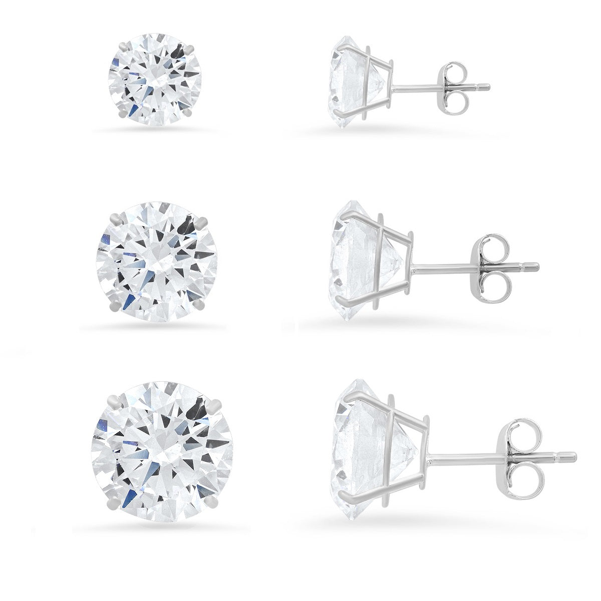 Sterling Silver Set of 3 Round-cut CZ Stud Earring Set