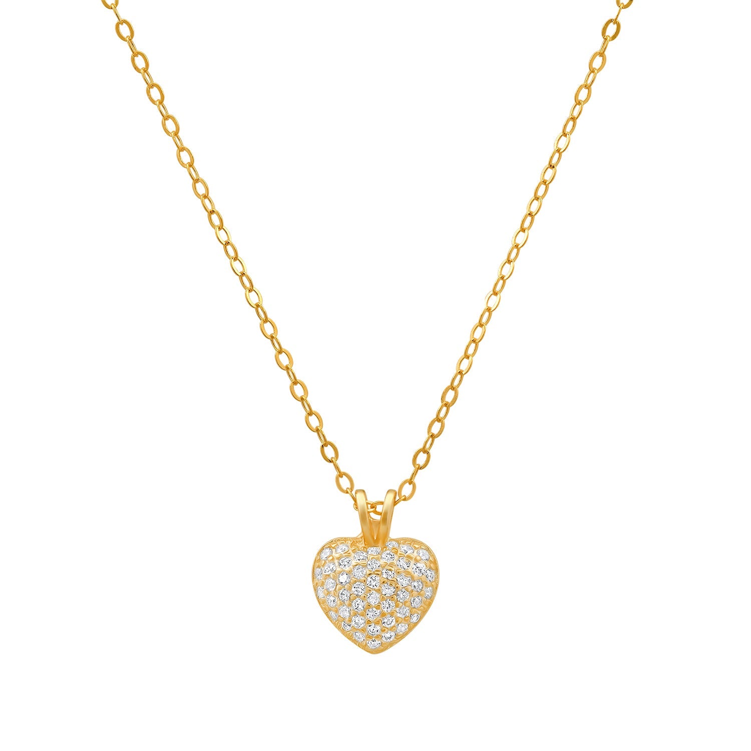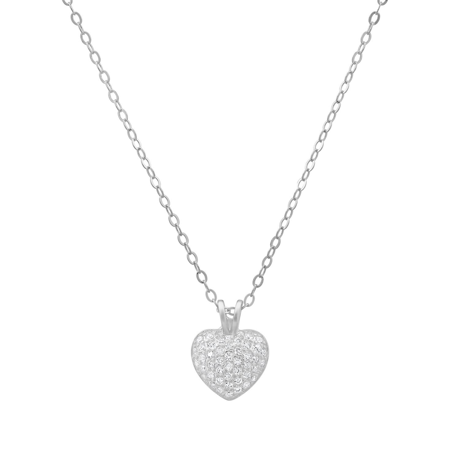 Sterling Silver Tiny Puffed CZ Heart Pendant Necklace