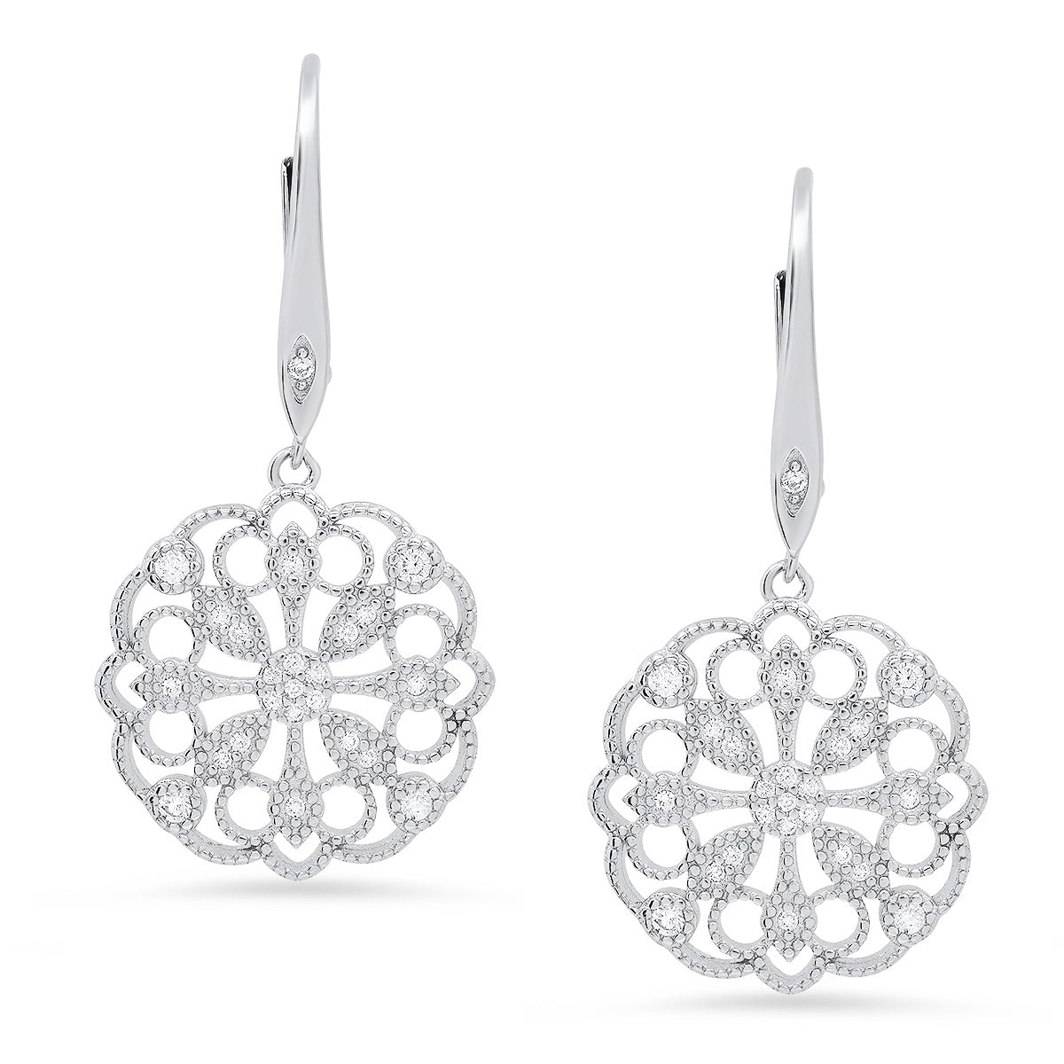 Sterling Silver Vintage Floral CZ Leverback Earrings