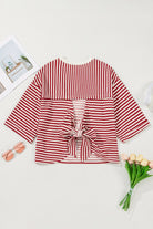 Stripe Bow Decor Cutout Drop Shoulder Top