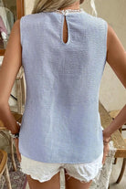Stripe Lace Patchwork Crew Neck Sleeveless Top