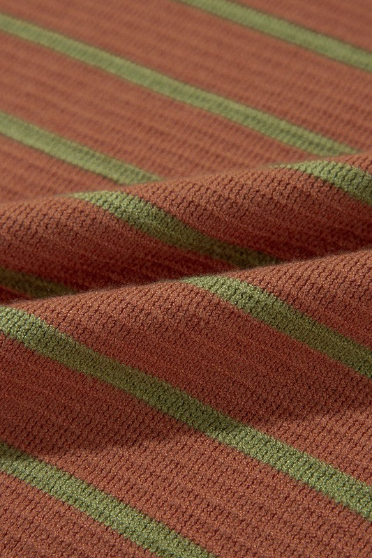 The rib-knit design adds texture and depth to the classic striped pattern, offering a modern twist to a timeless look.