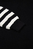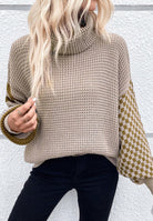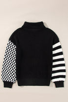 Striped & Checkered Turtleneck Dropped Shoulder Sweater