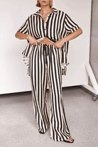 Striped Collared Neck Half Sleeve Top and Pants Set