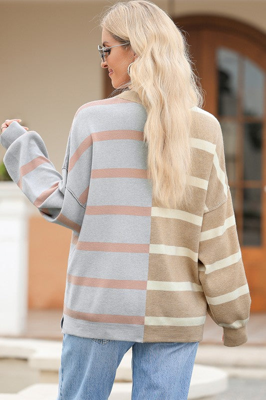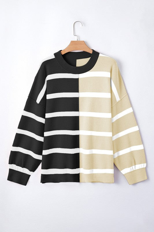 Striped Colorblock Drop Shoulder Sweater