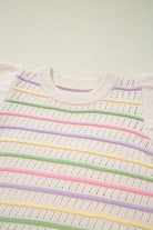 Striped Eyelet Ruffled Sleeve Sweater Sweater Vest