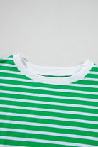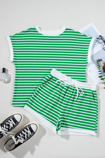 Striped Round Neck Short Sleeve Top and Shorts Set