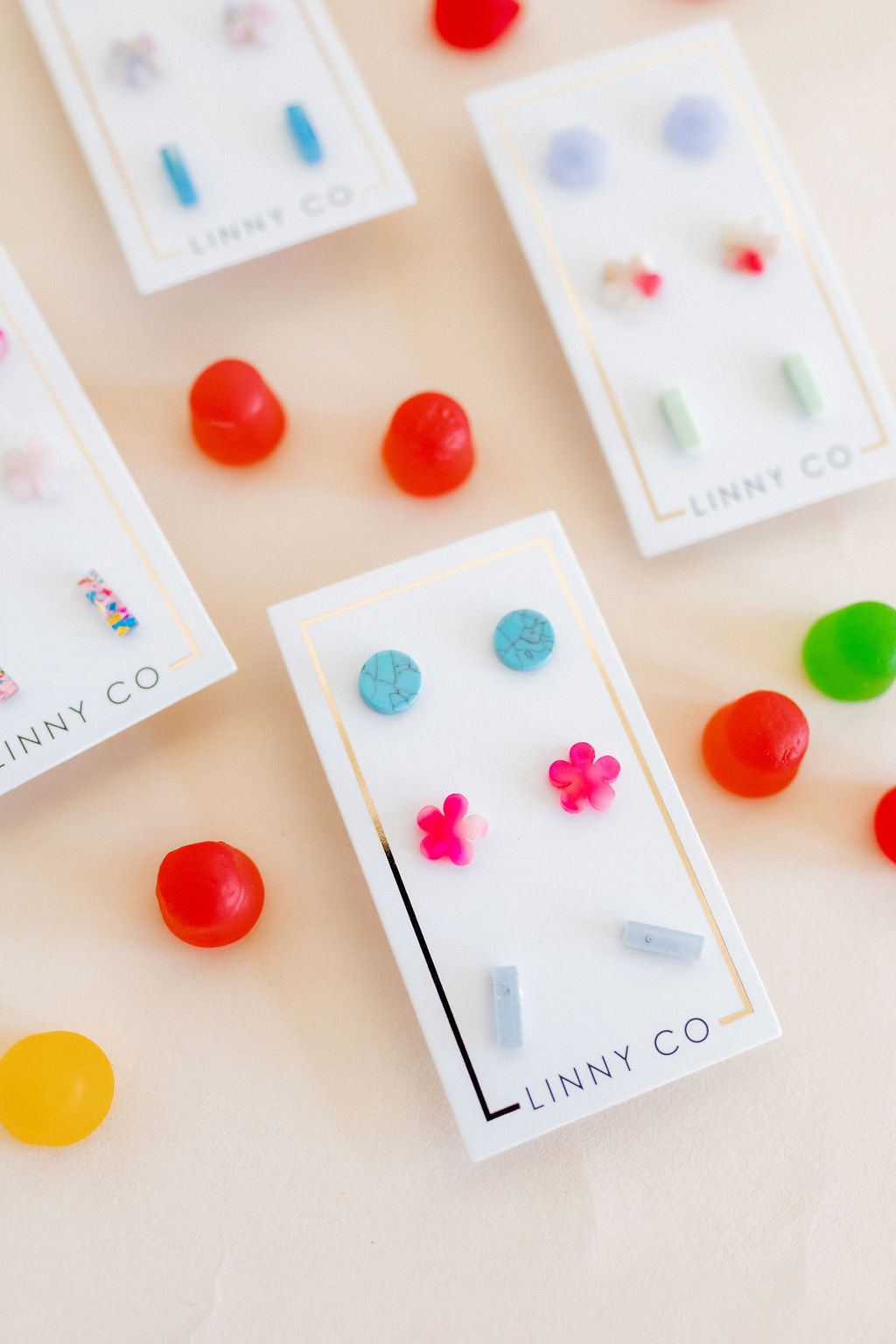 LINNY CO jewelry is safe for sensitive ears, light weight and made to last. Made from 100% surgical-grade stainless steel and eco-friendly acetate, LINNY CO is always copper and nickel free.