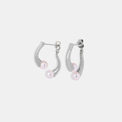 Synthetic Pearl Asymmetrical Titanium Steel Earrings