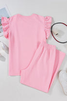 Textured Pearled Ruffled Sleeve Top and Wide Leg Pants Set