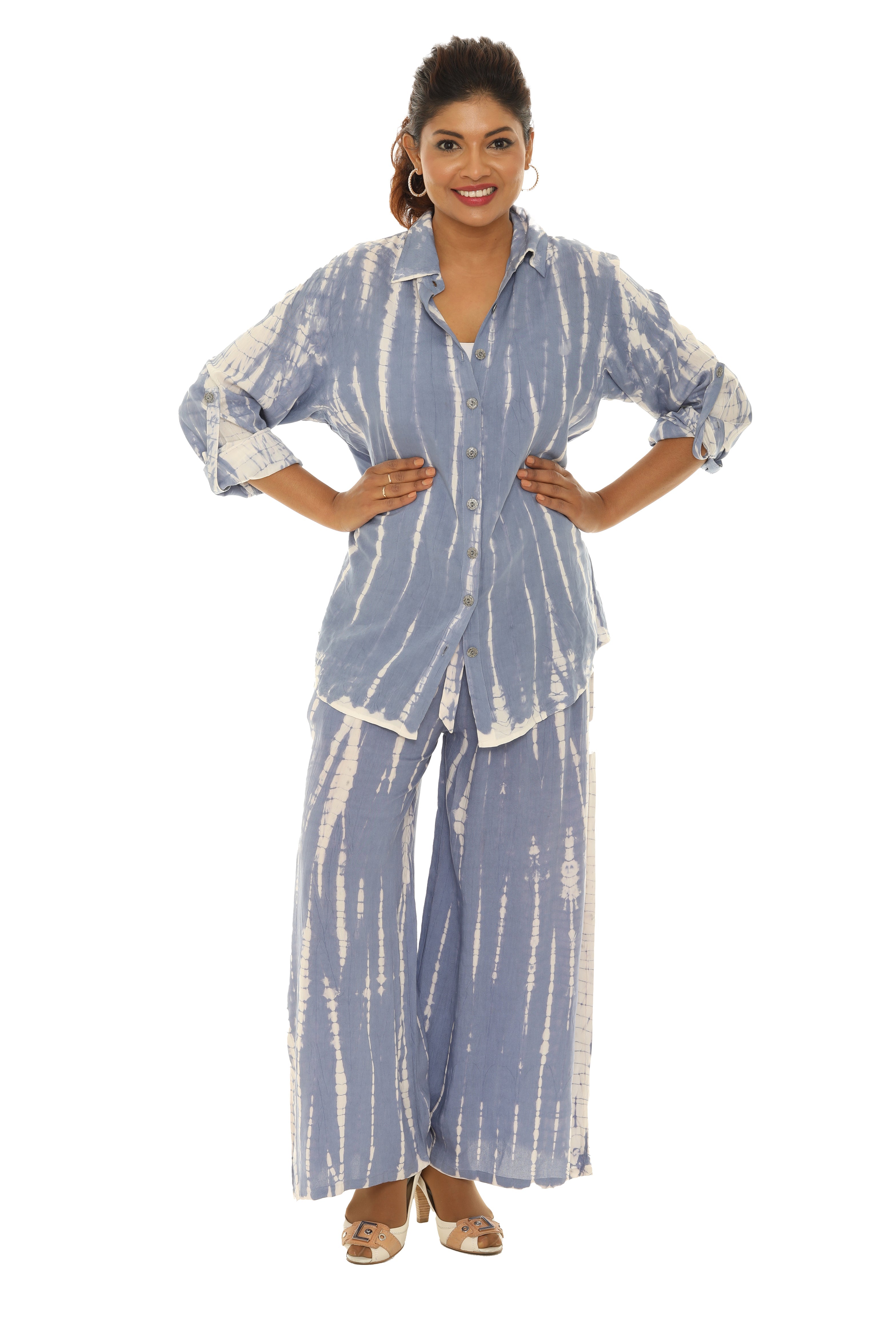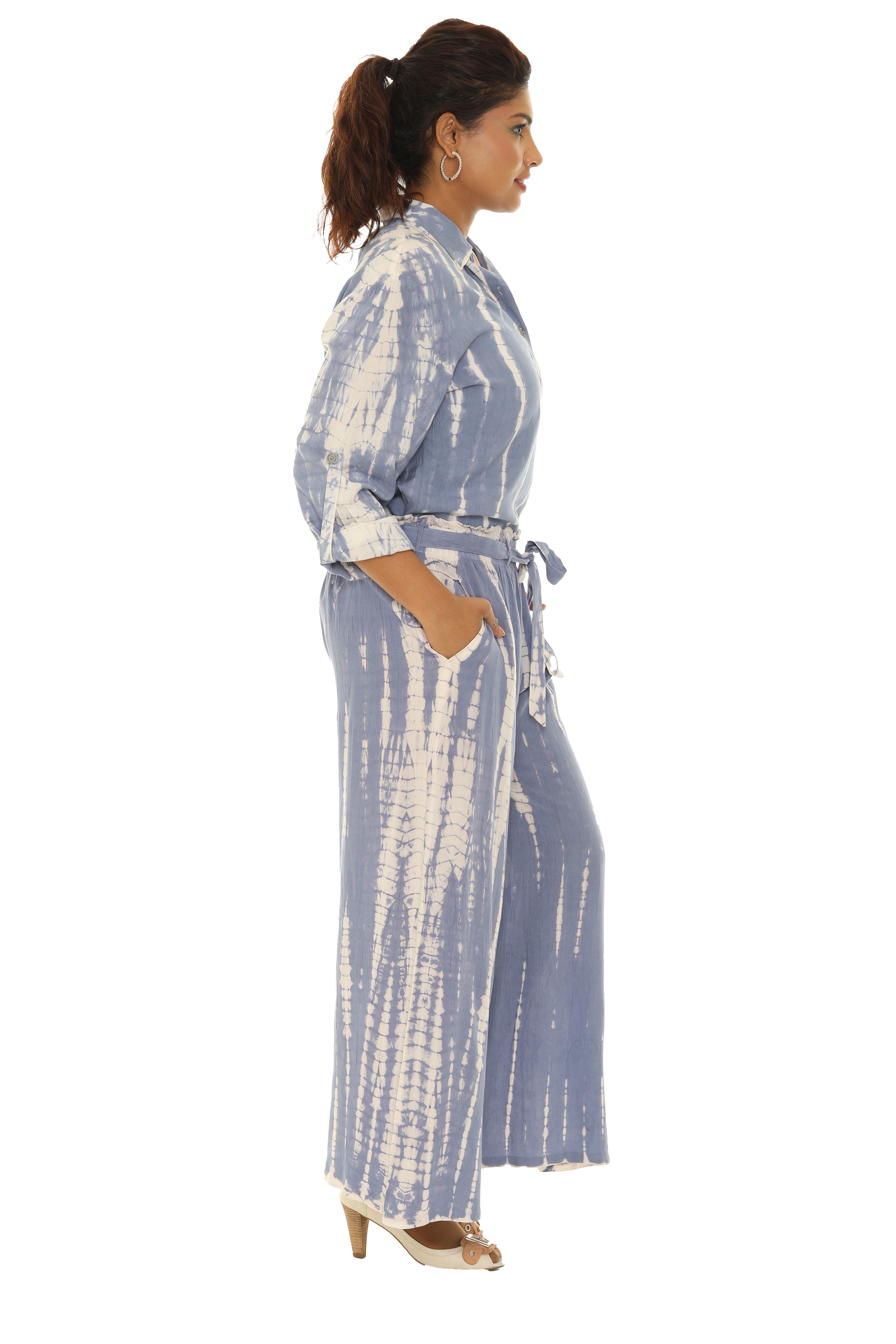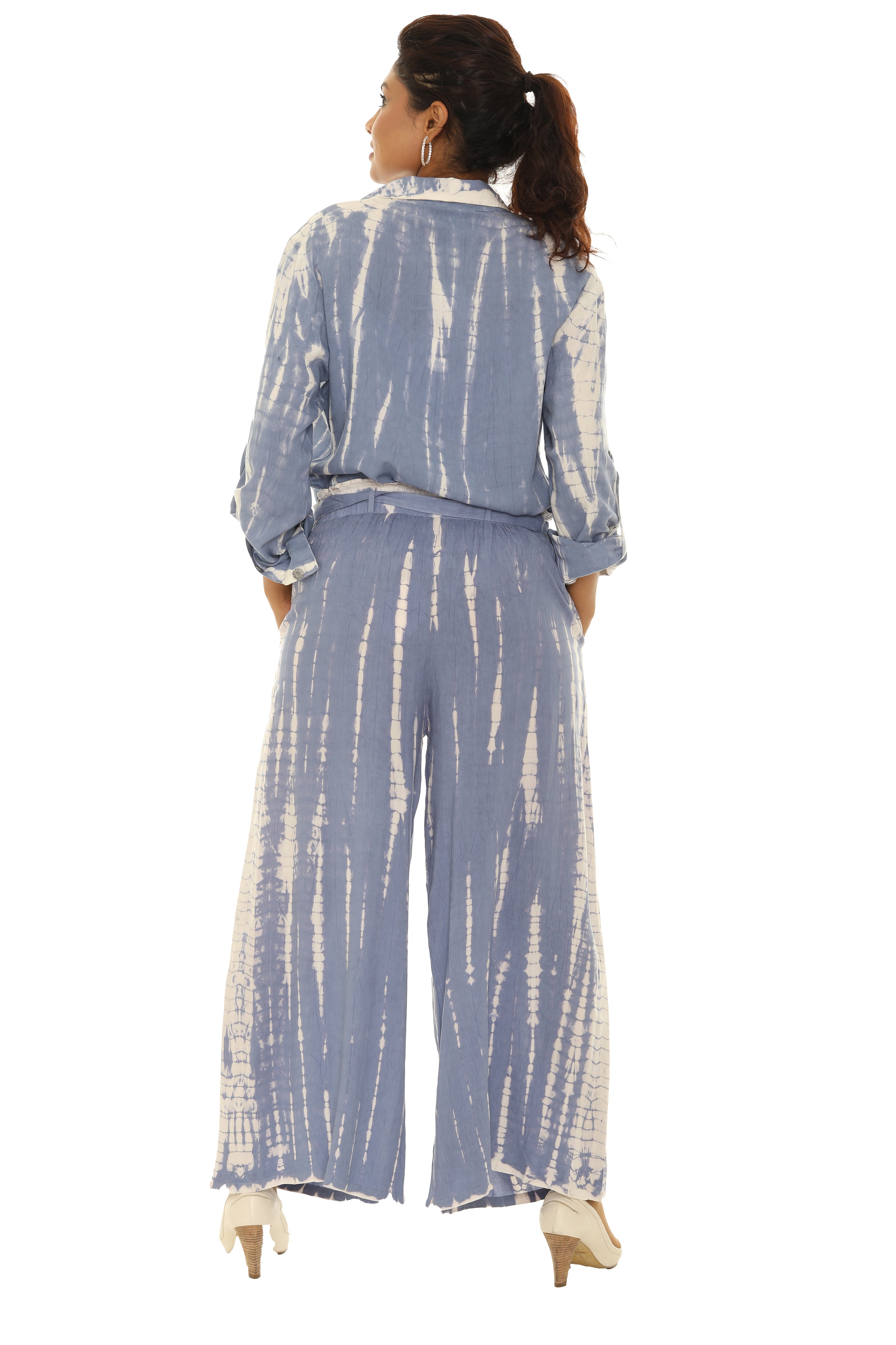 Tie Dye Button-Up Shirt with Tie Dye Belted Pocket Palazzo Pants