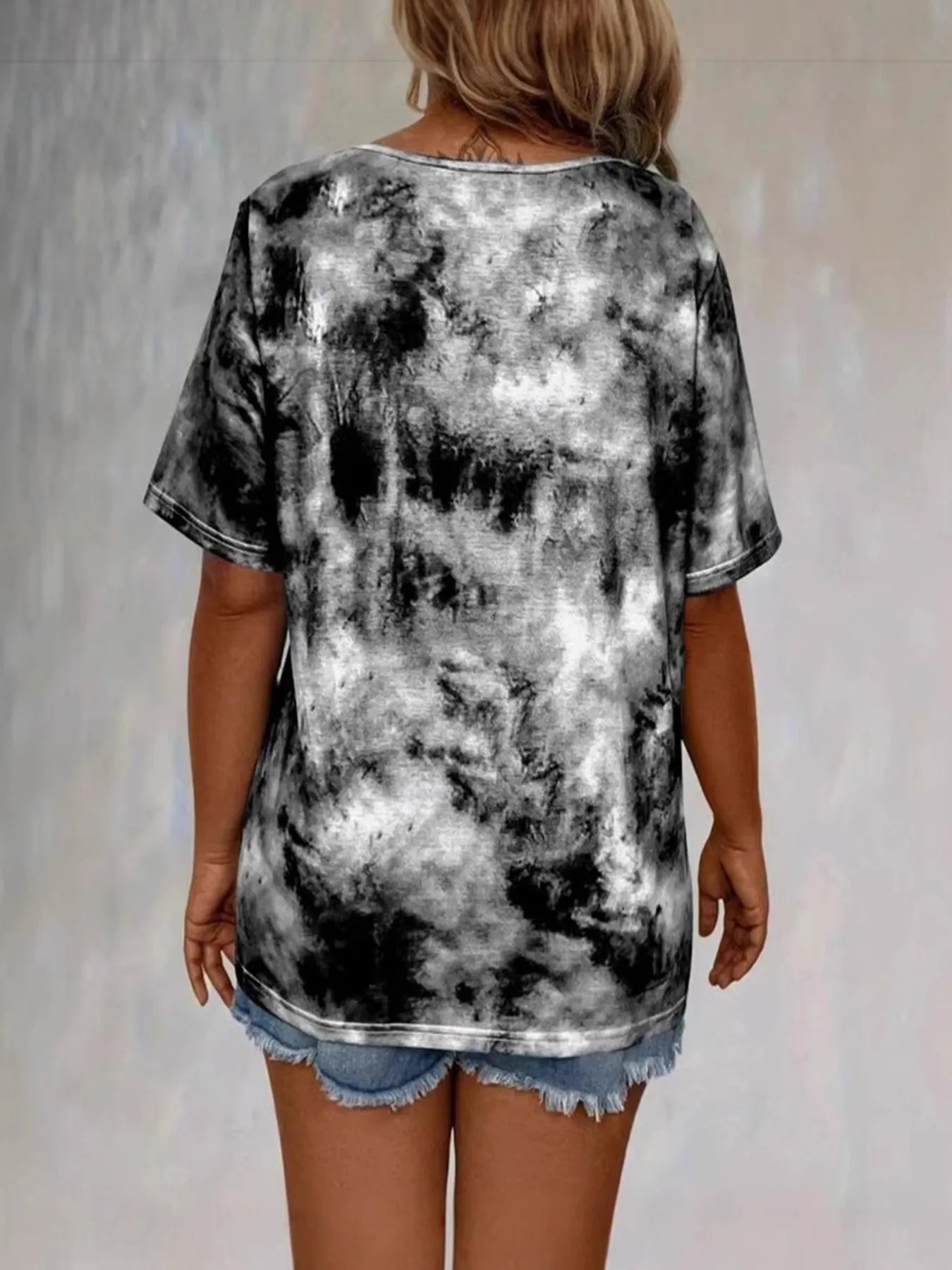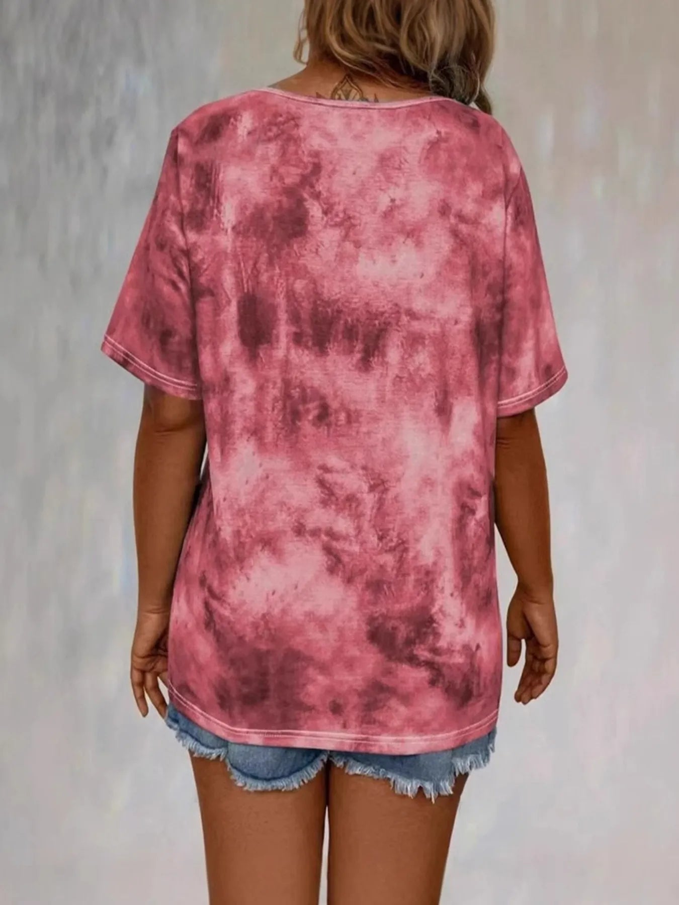 Tie Dye Lace-Up V-Neck Casual T-Shirt