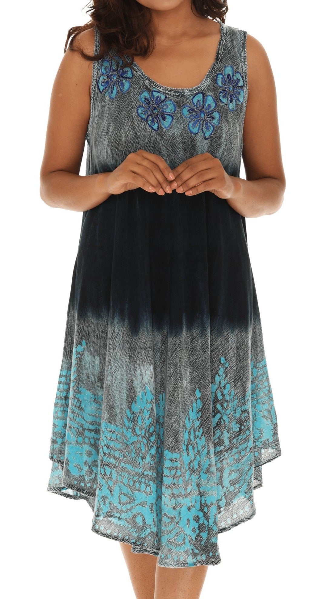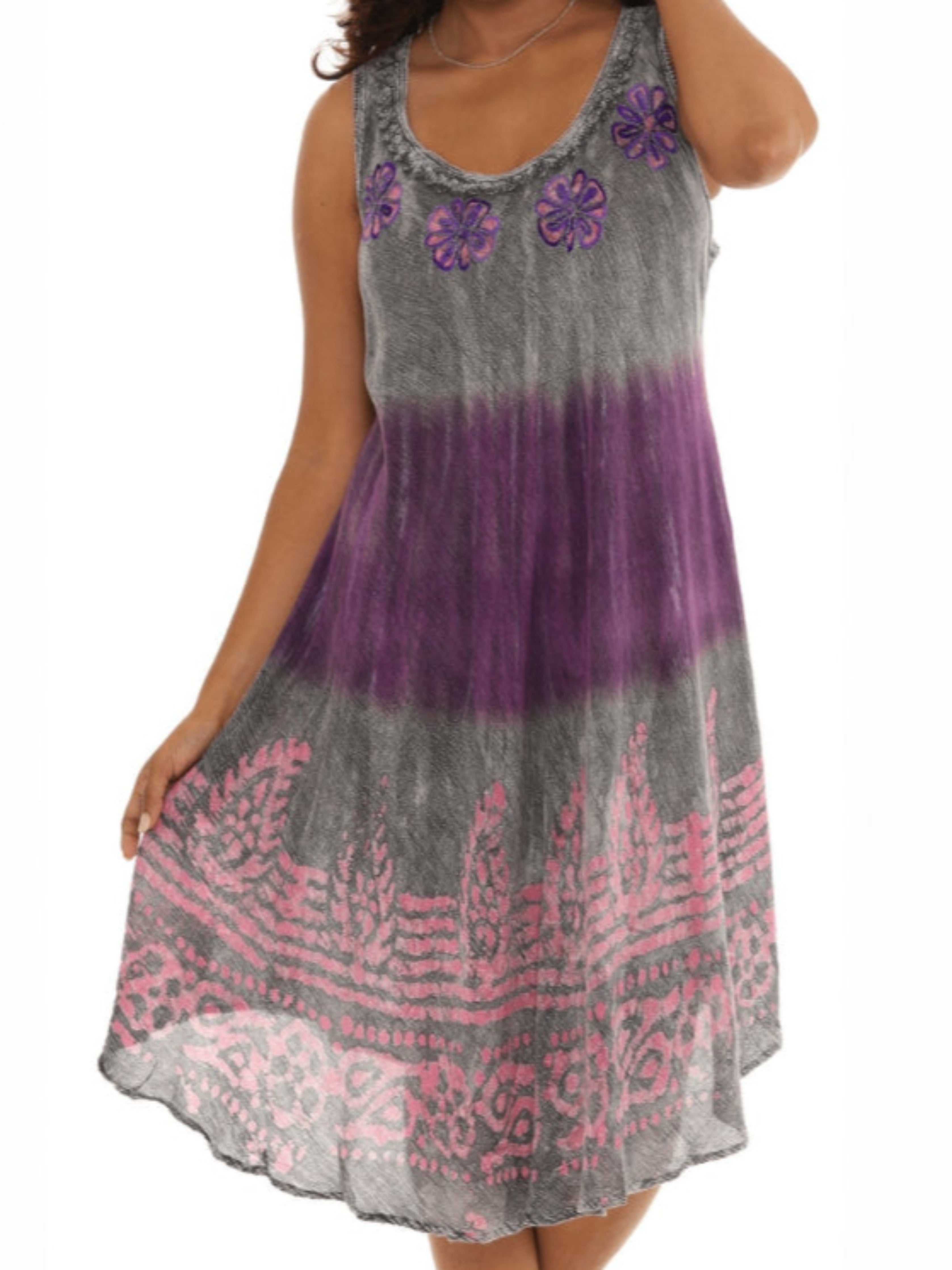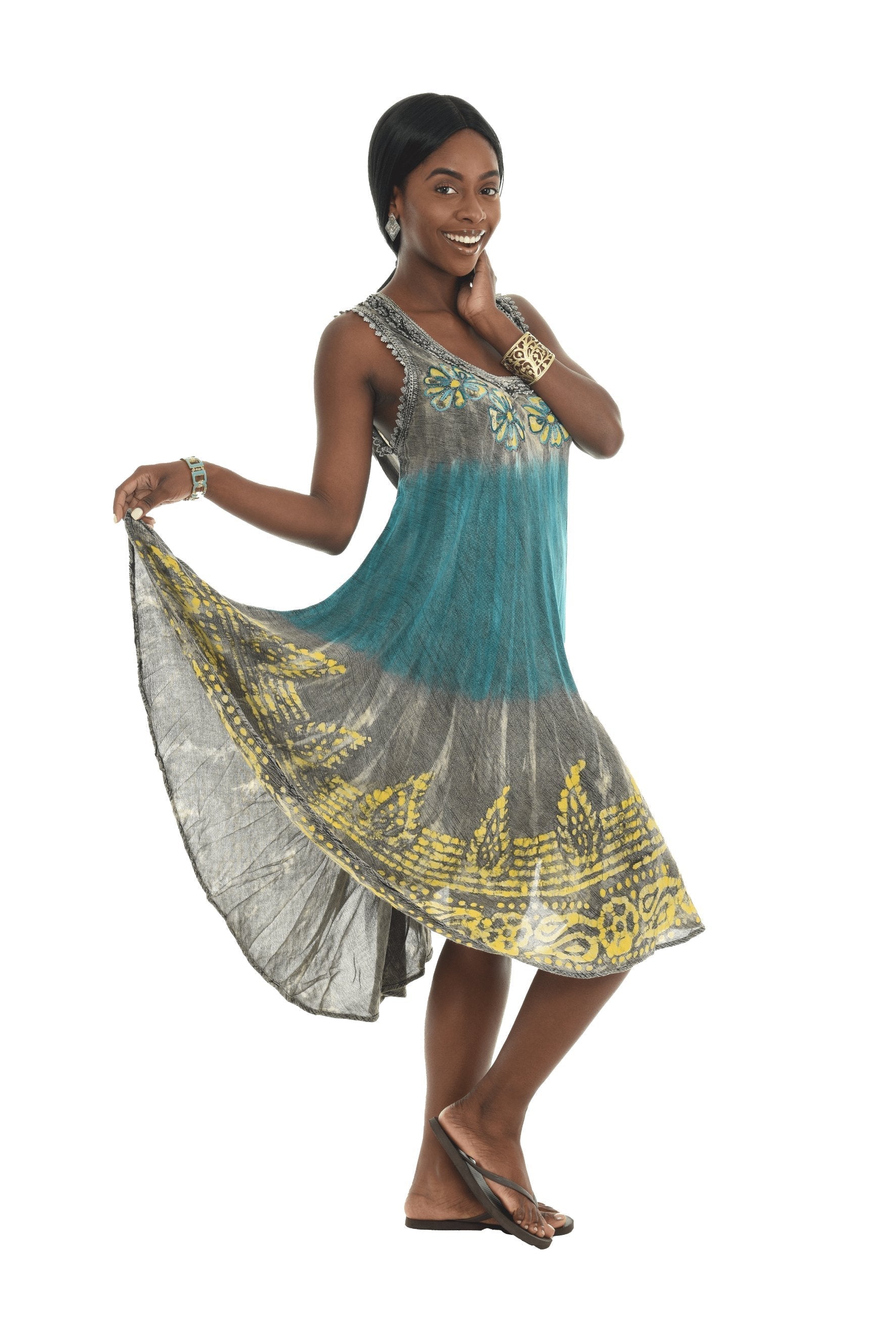 Magnify your dress collection with this easy-to-wear midi pick that features an eye-catching tie-dye print.
