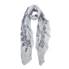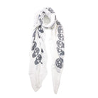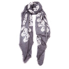Blue Pacific Frida skull scarf offered in five colors with intricate skull print. Cashmere/micromodal blend, lightweight & bold—edgy rocker style meets soft luxury.