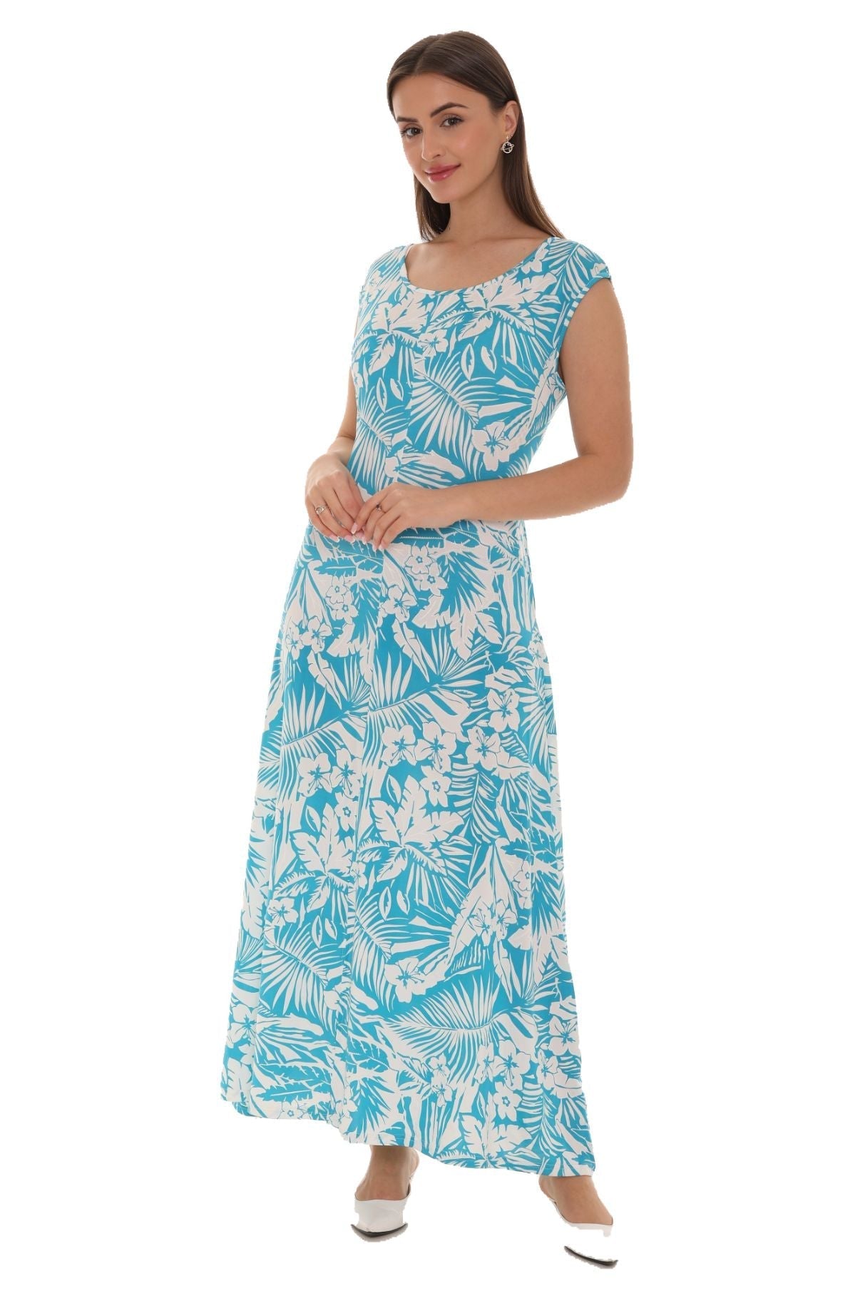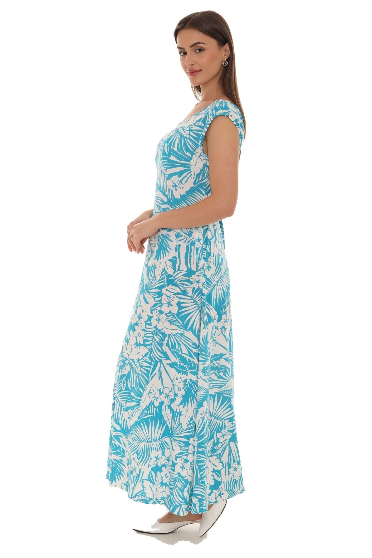 Tropical Leaf Print Cap Sleeve Maxi Dress