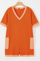 Two-Tone Short Sleeve V Neck Patched Pocket Romper