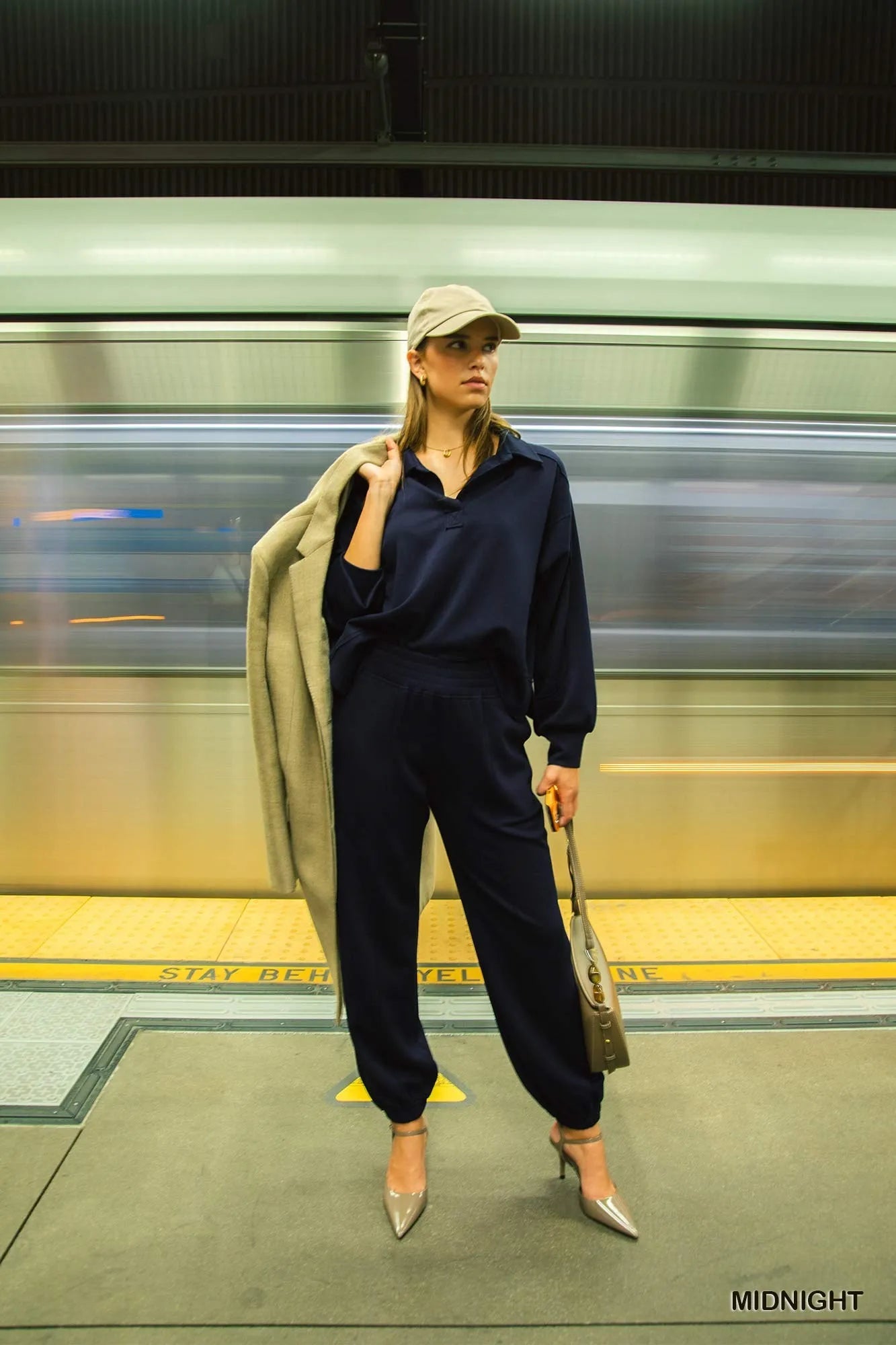 These drawstring jogger pants feature a stylish front seam detail, adding a unique touch to your athleisure wardrobe. The drawstring waist allows for a customizable fit, making them both comfortable and functional. Perfect for running errands or lounging at home, these pants combine fashion and comfort effortlessly. Upgrade your casual look with these trendy joggers today!