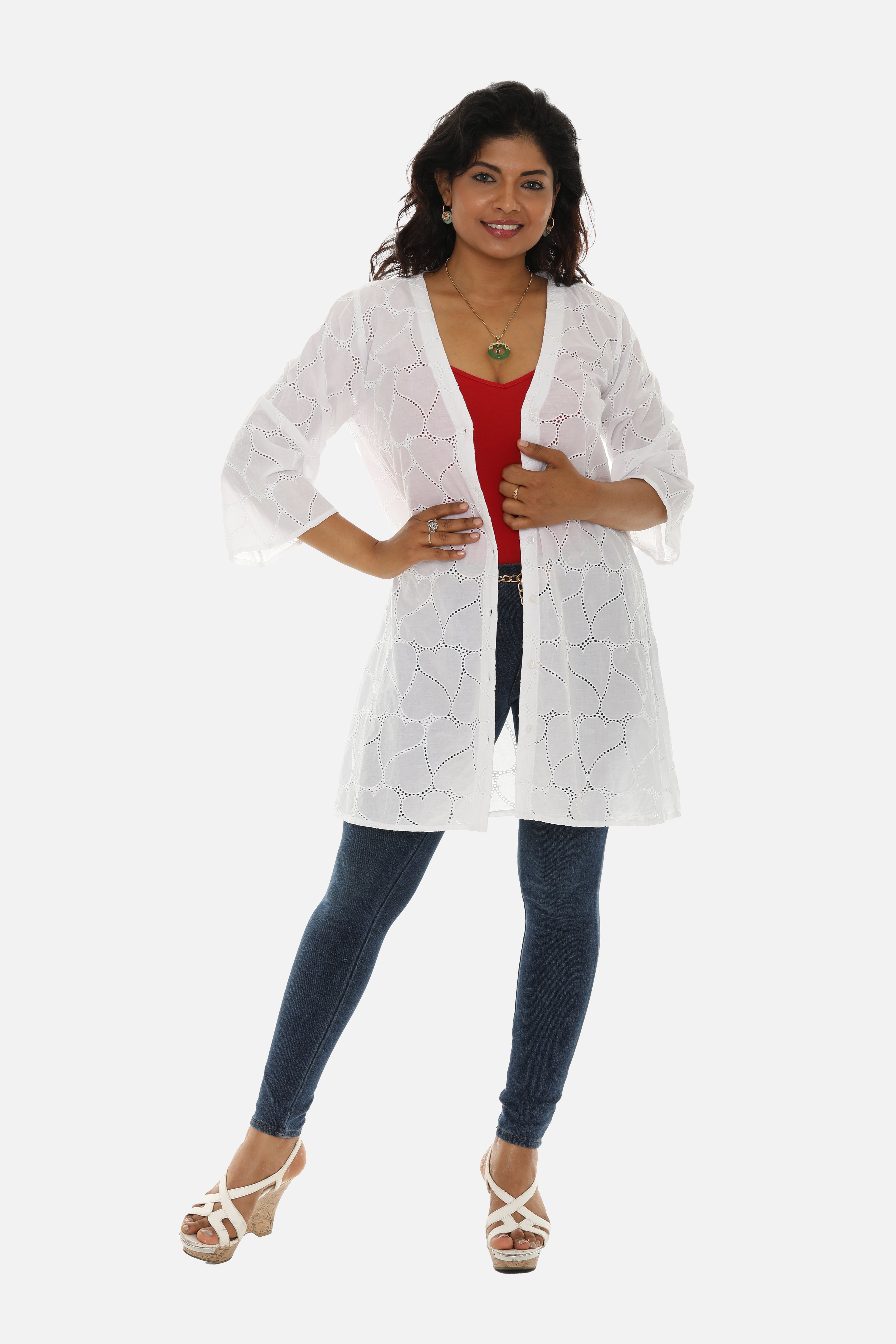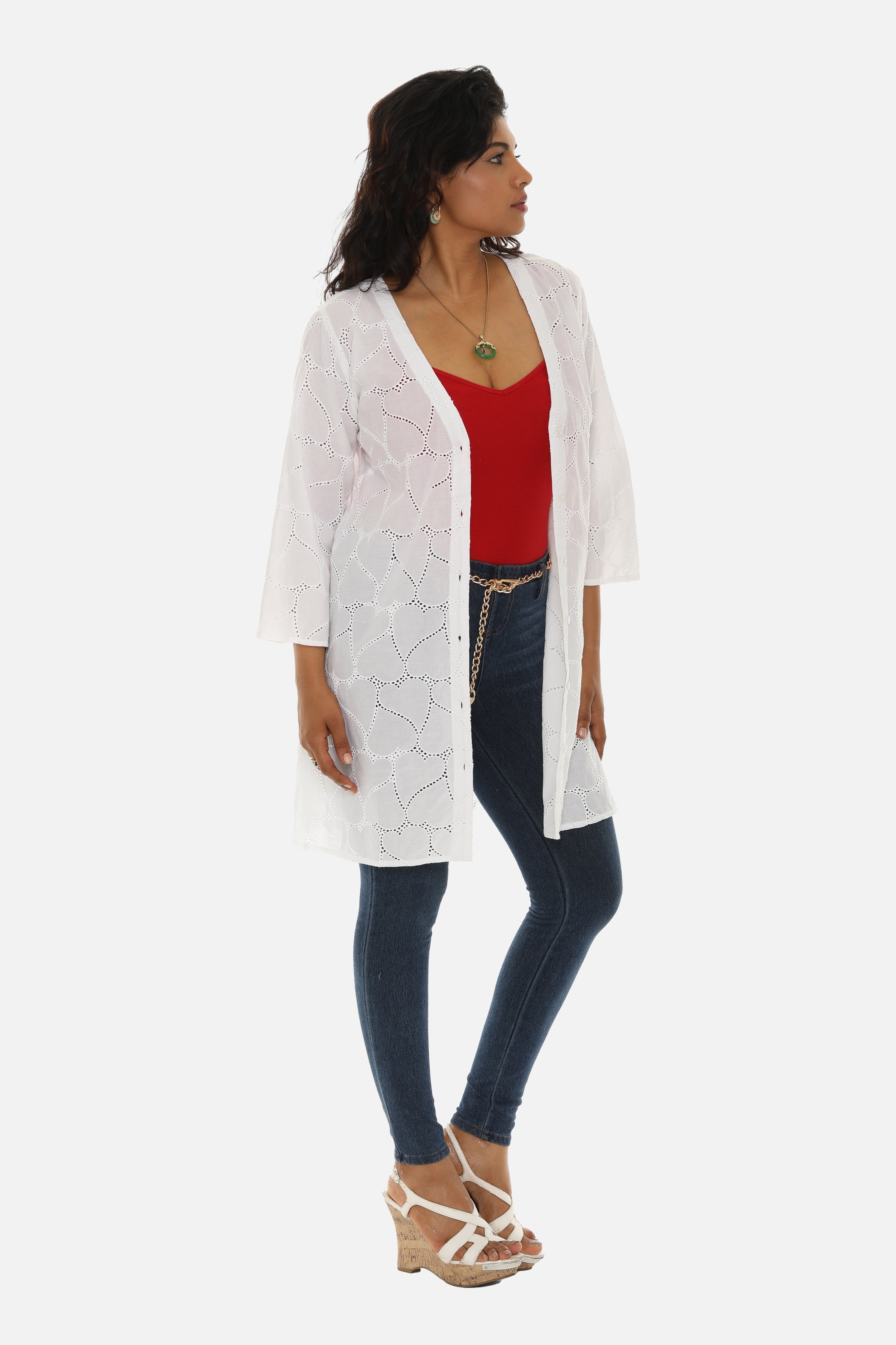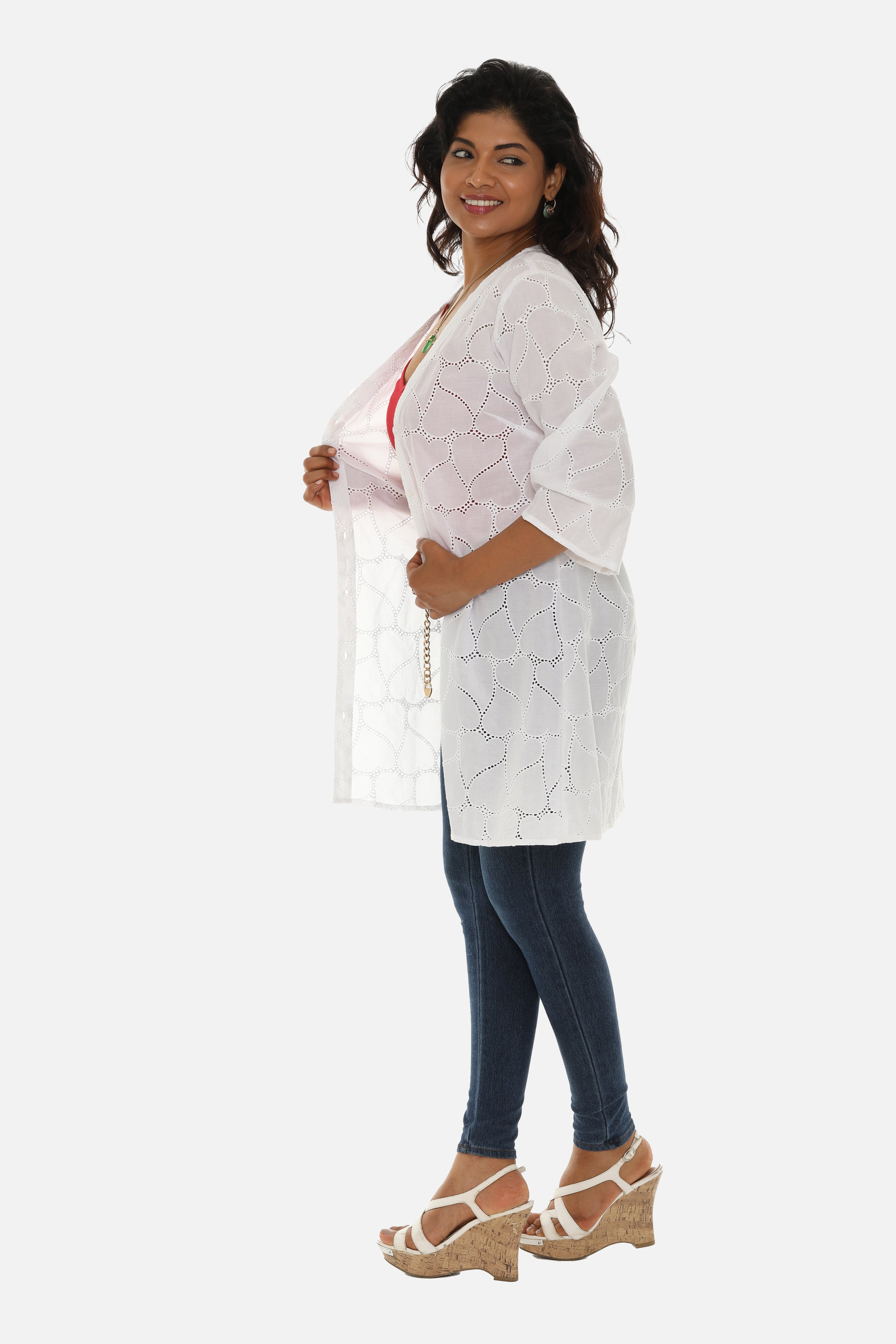 A stylish and versatile shirt for women, this V-neck eyelet button-down features a delicate eyelet pattern and a flattering V-neckline. The button-down design makes it easy to wear and layer, while the lightweight fabric adds breathability and comfort. Perfect for dressing up or down, this shirt is a great addition to any wardrobe.