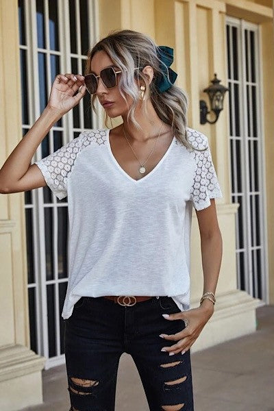 V neck top with lace detailing