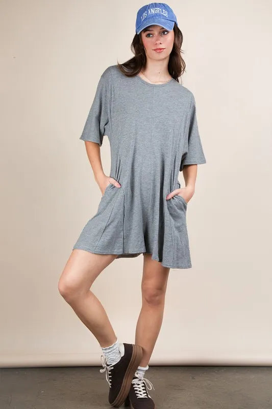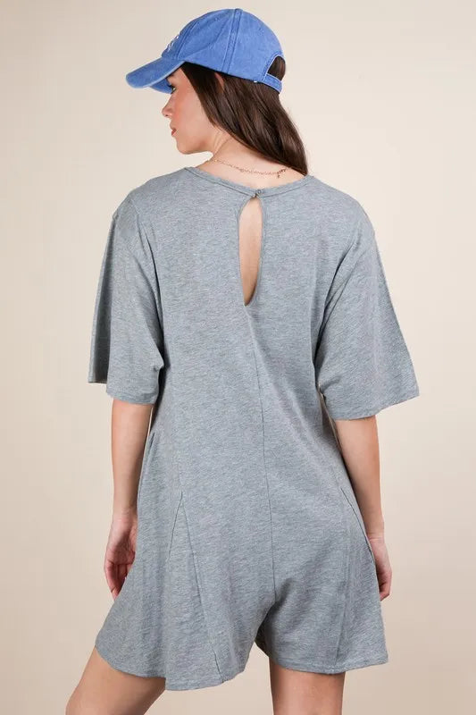 VERY J Mineral Washed Oversized Knit Comfy Romper