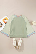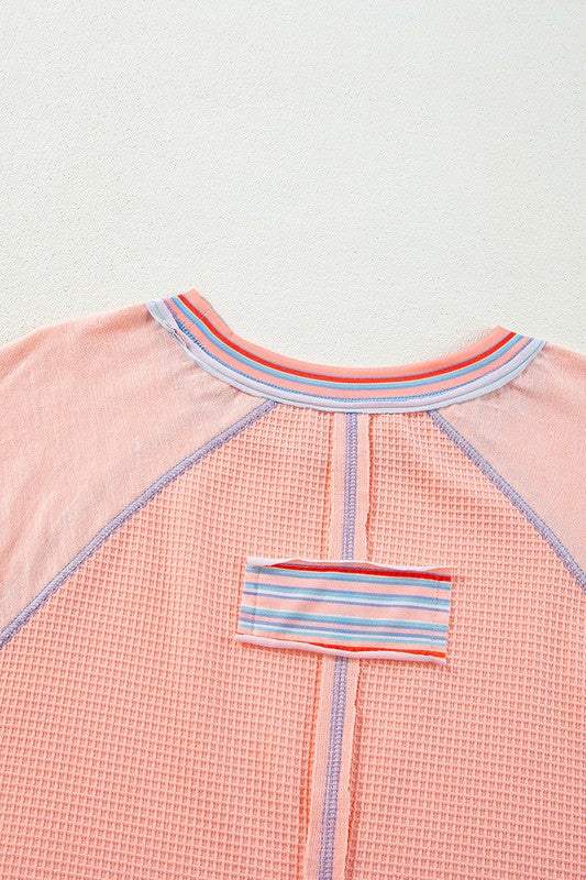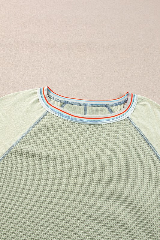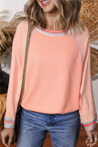 Waffle Knit Bracelet Sleeve Patchwork Sweatshirts