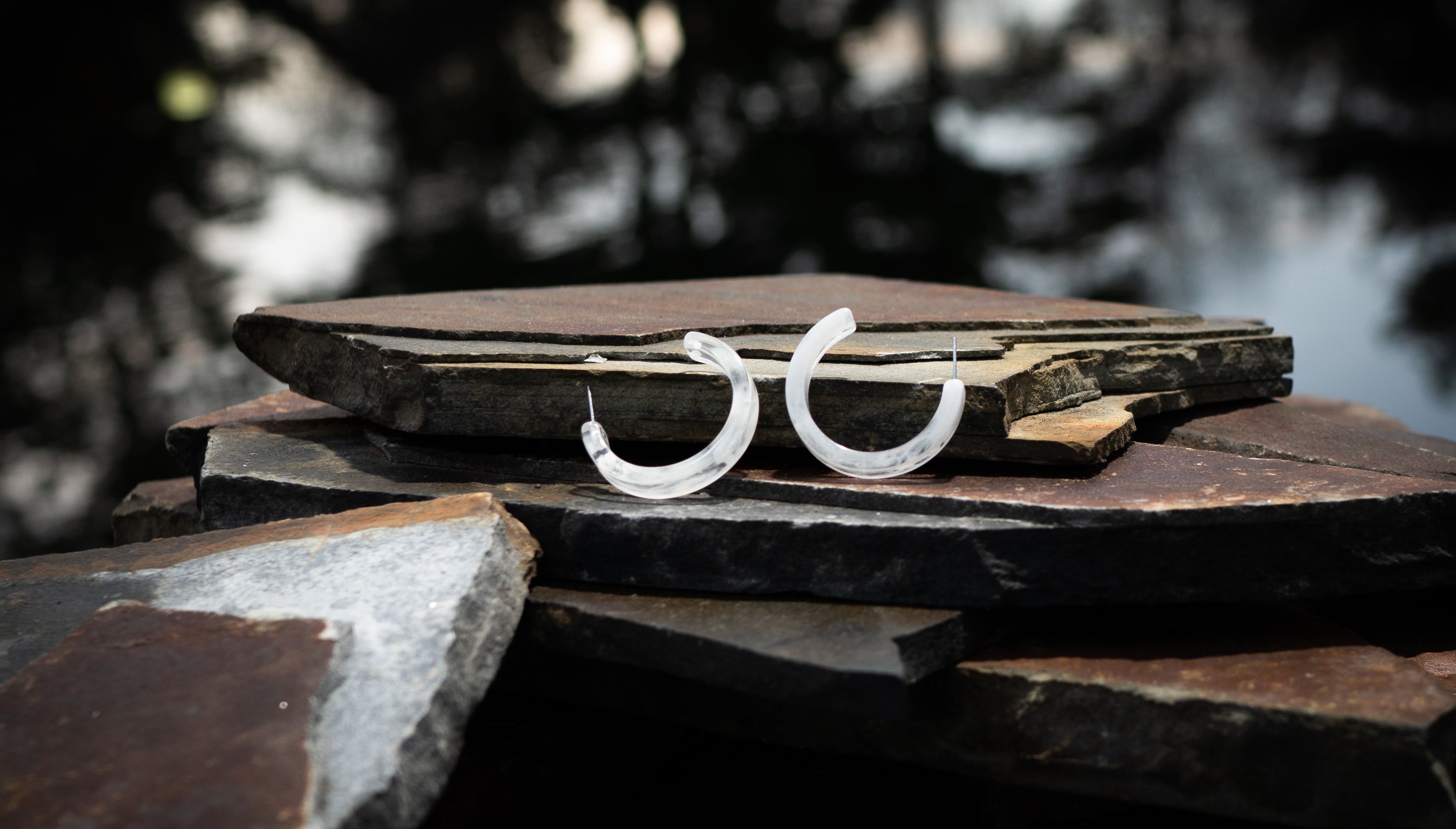 White Marble Lucite Hoop Earring