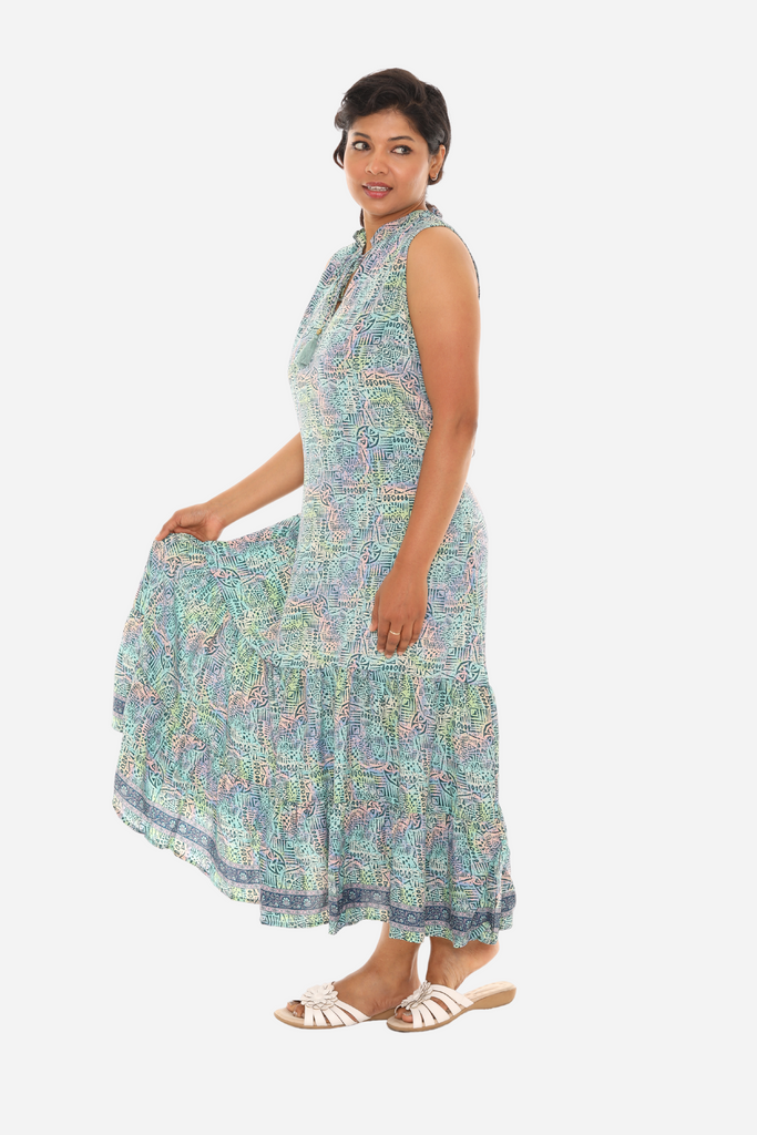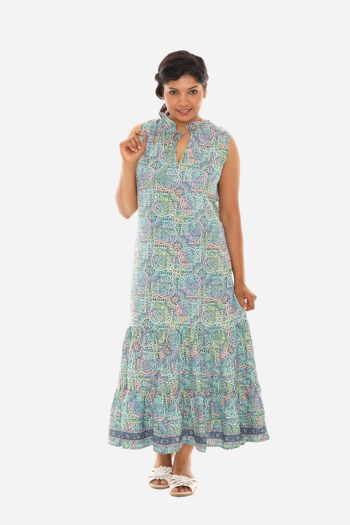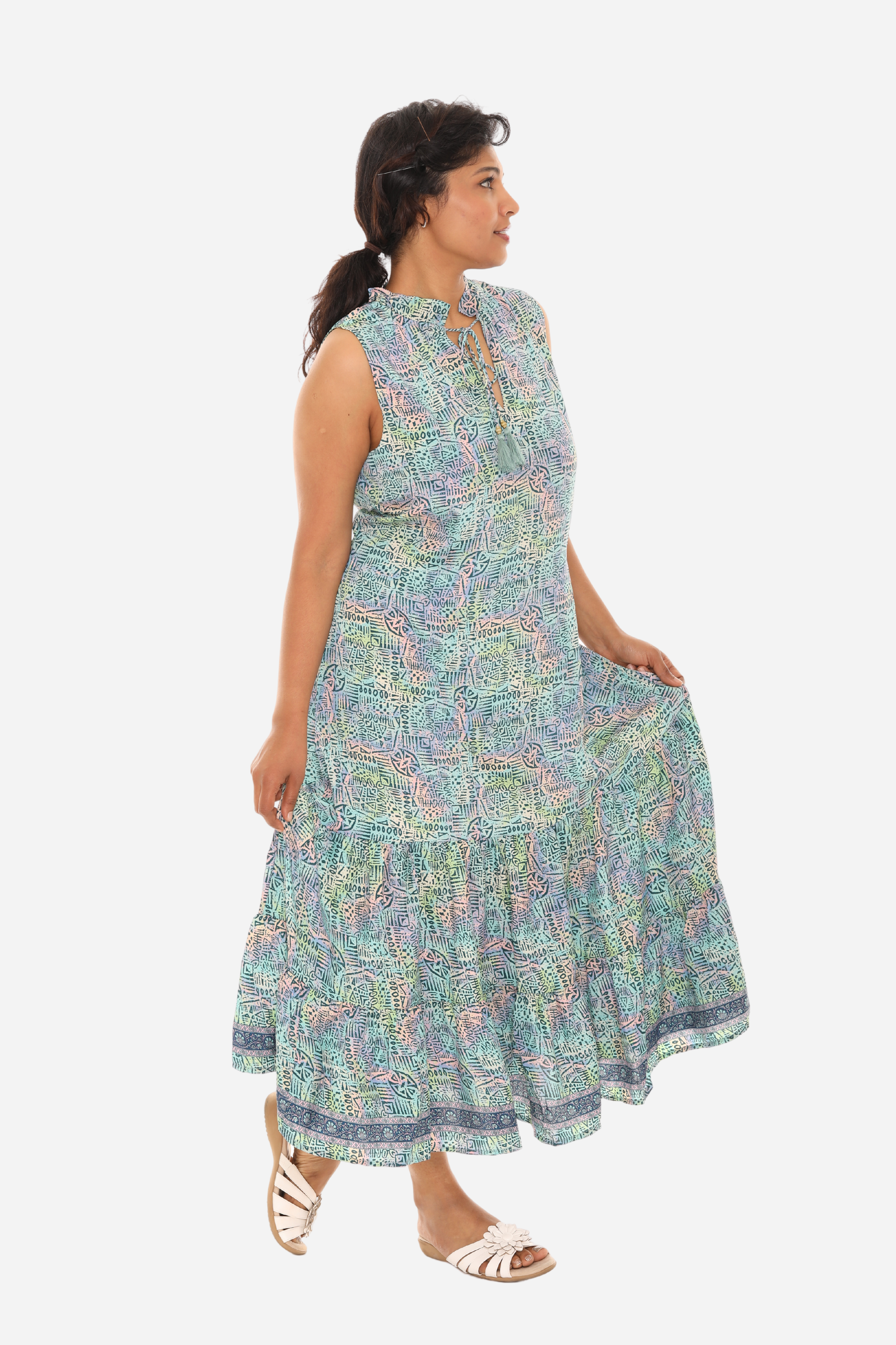 This classic maxi silhouette is a new forever favorite, designed in a vibrant Turquoise floral print. Cut in a split V neck shape with tasseled ties. This maxi is a versatile dress amazing for day or night, super comfortable yet full of style.Ā