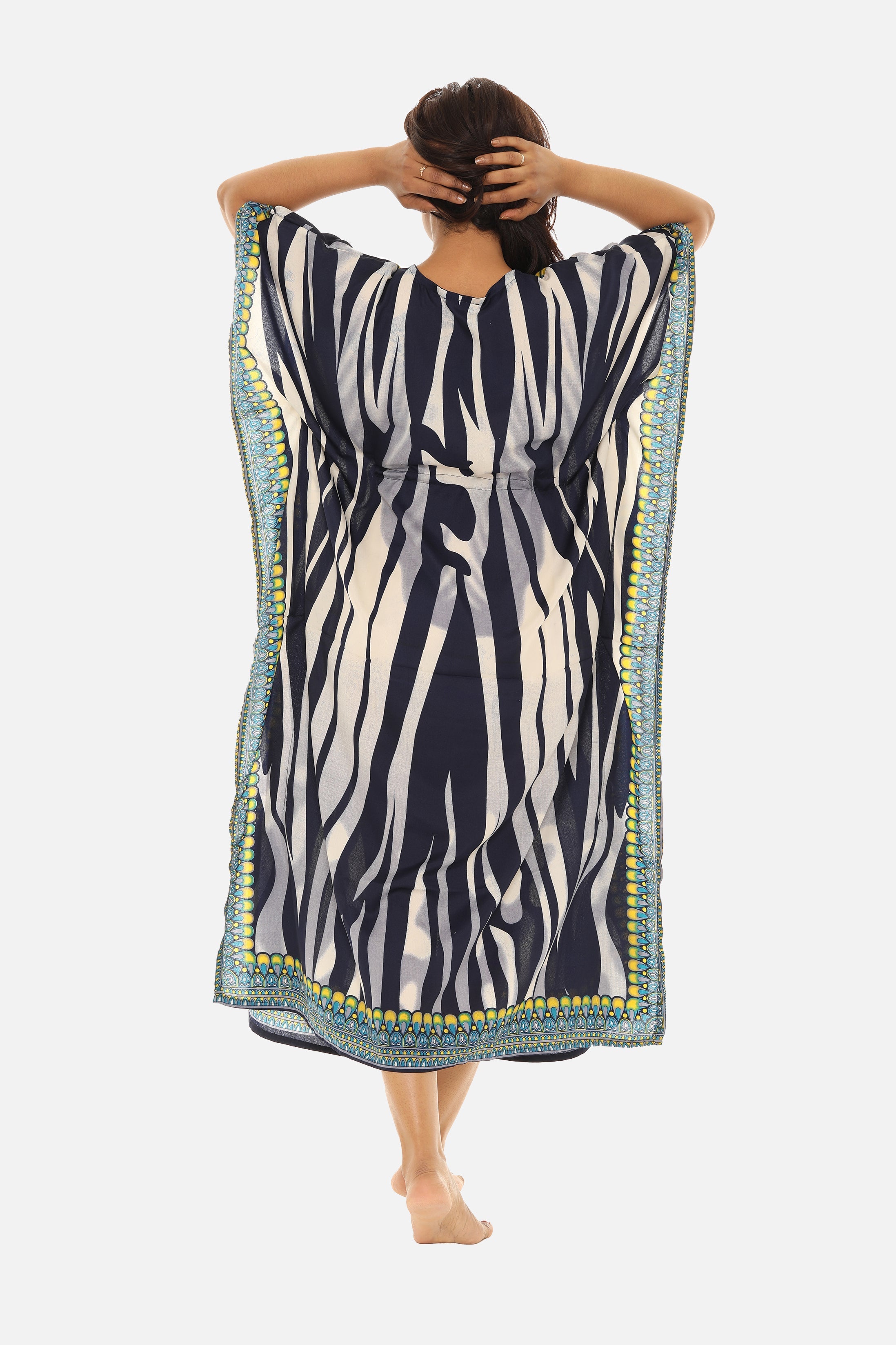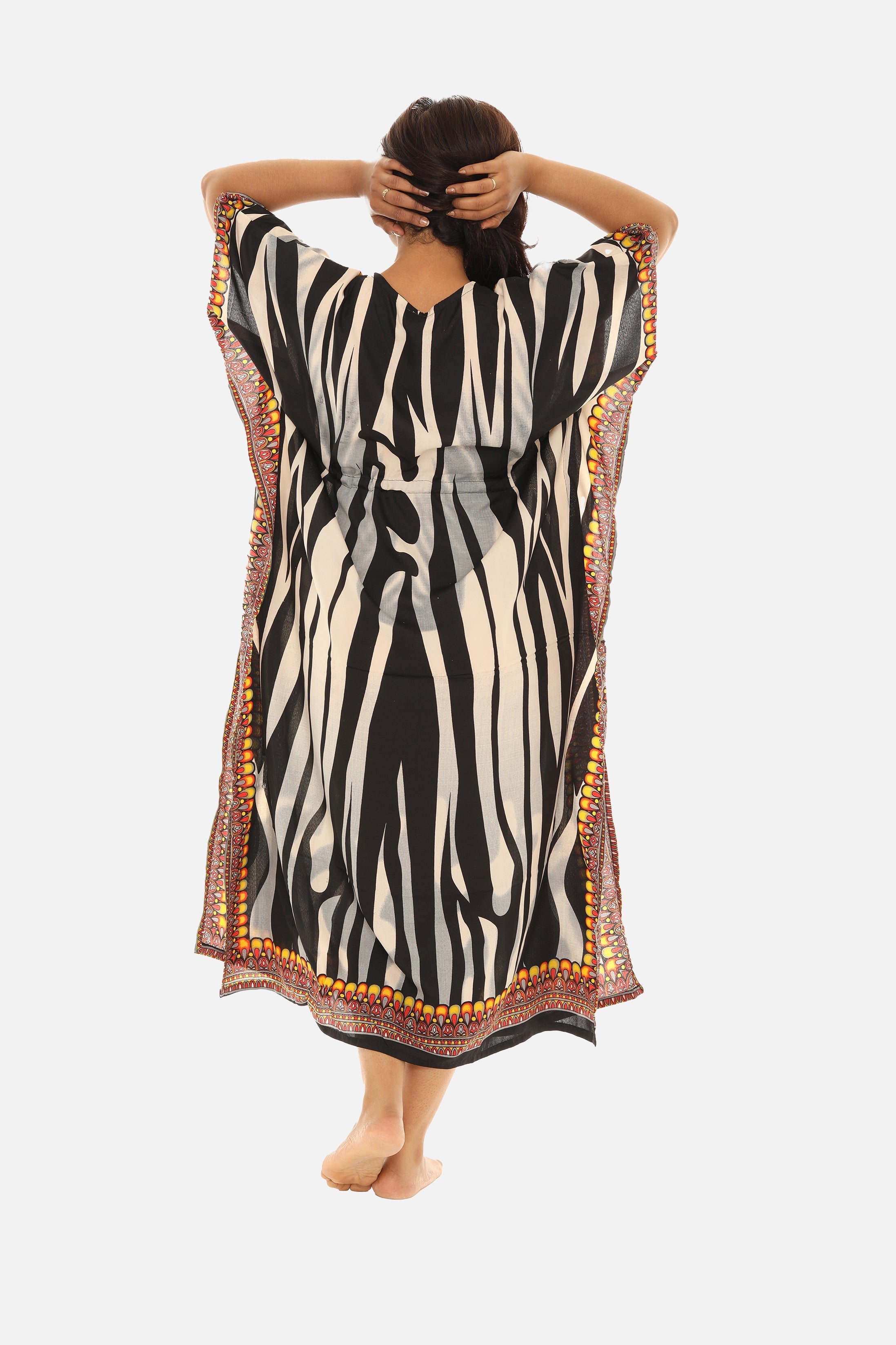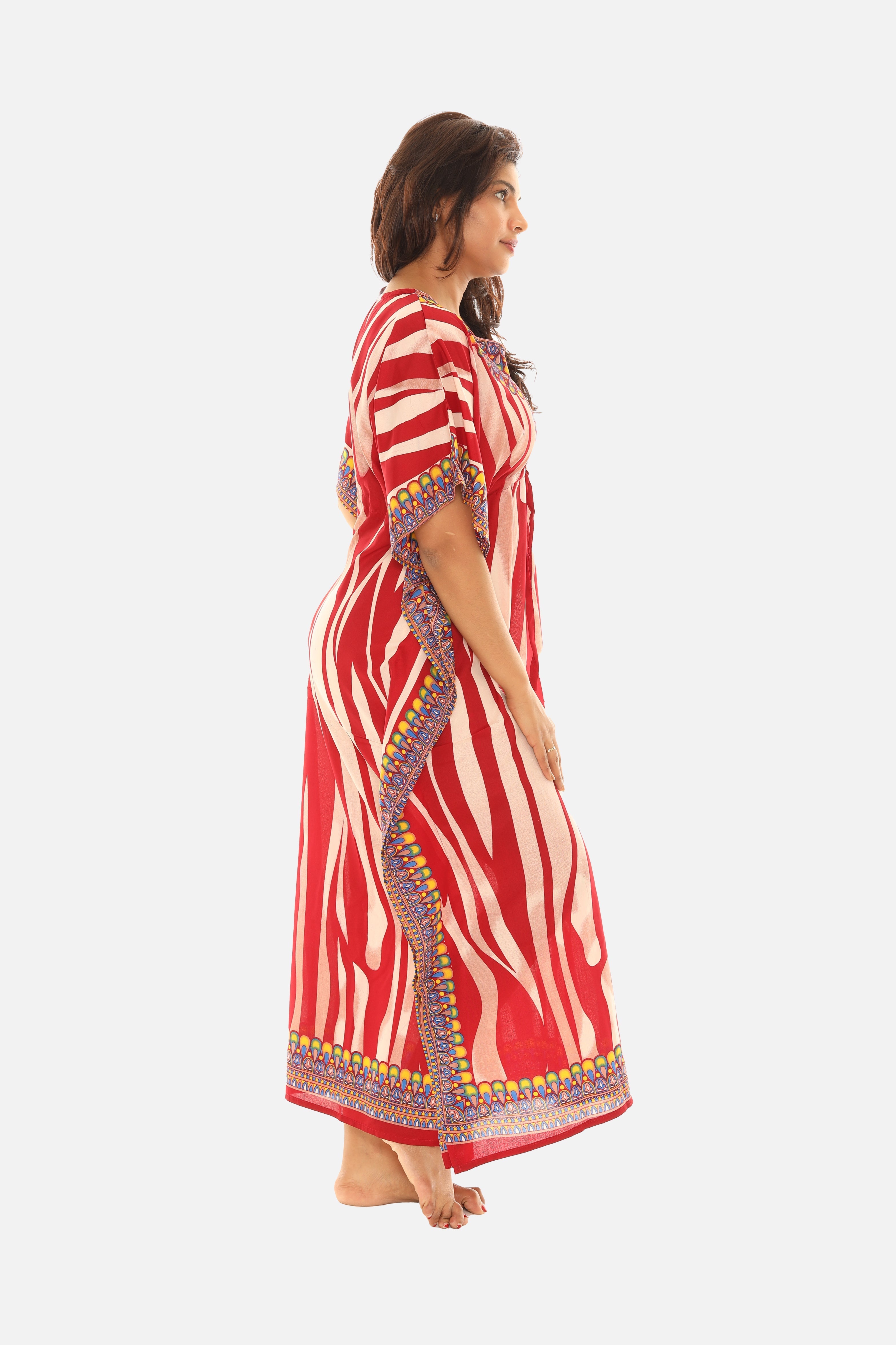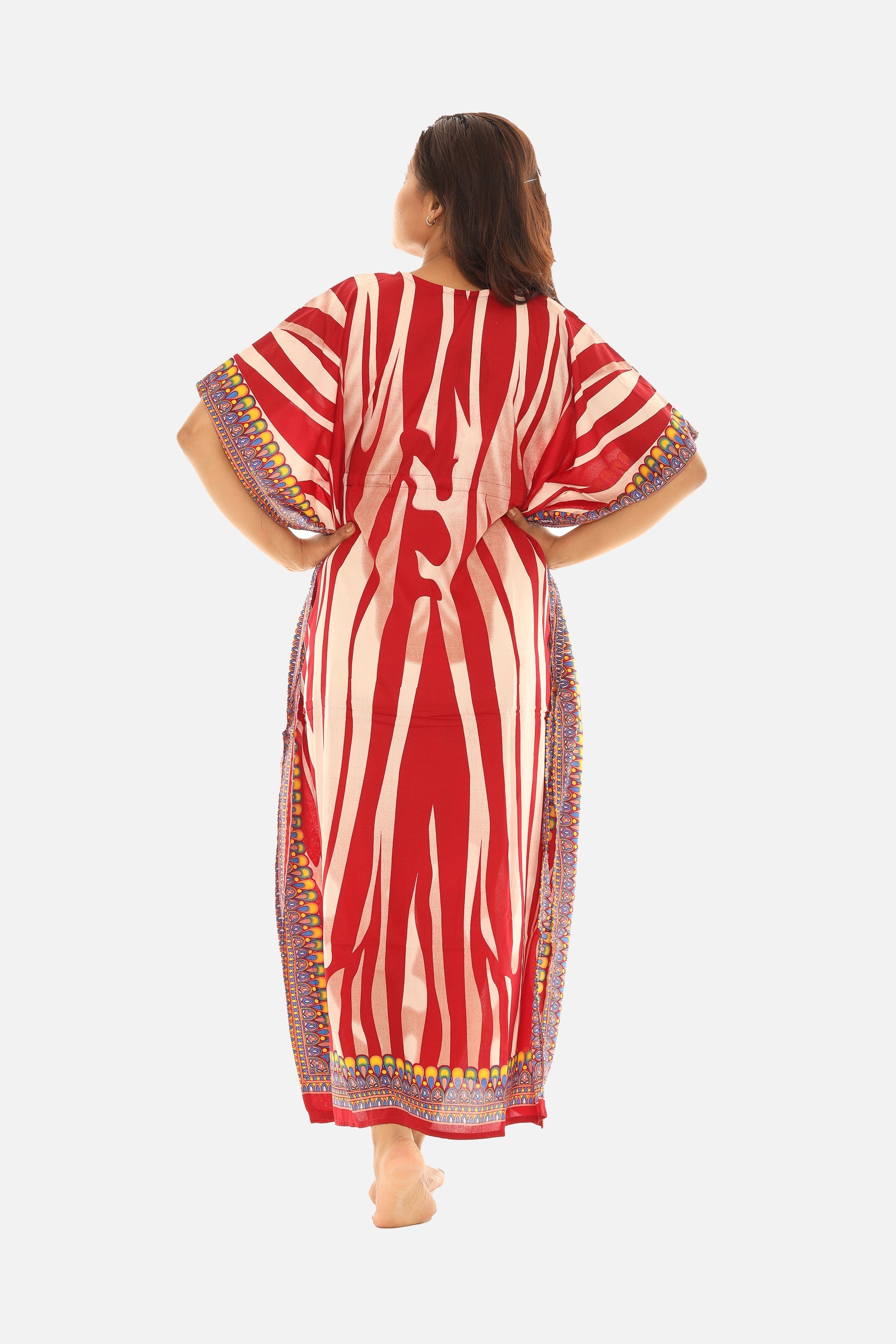 It's summer – trade your day-to-day outfits for this marvelous long printed caftan for women! Made from lightweight, breathable material in a caftan silhouette, this beautiful piece will keep you breezy, cool, and stylish all summer long! With dainty ties and intricate prints, you'll look stunning for any beach outing or romantic evening. Let this long printed caftan for women draw all eyes on you!