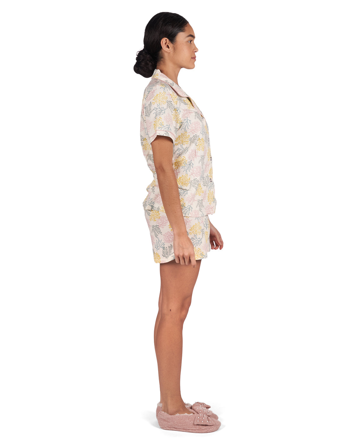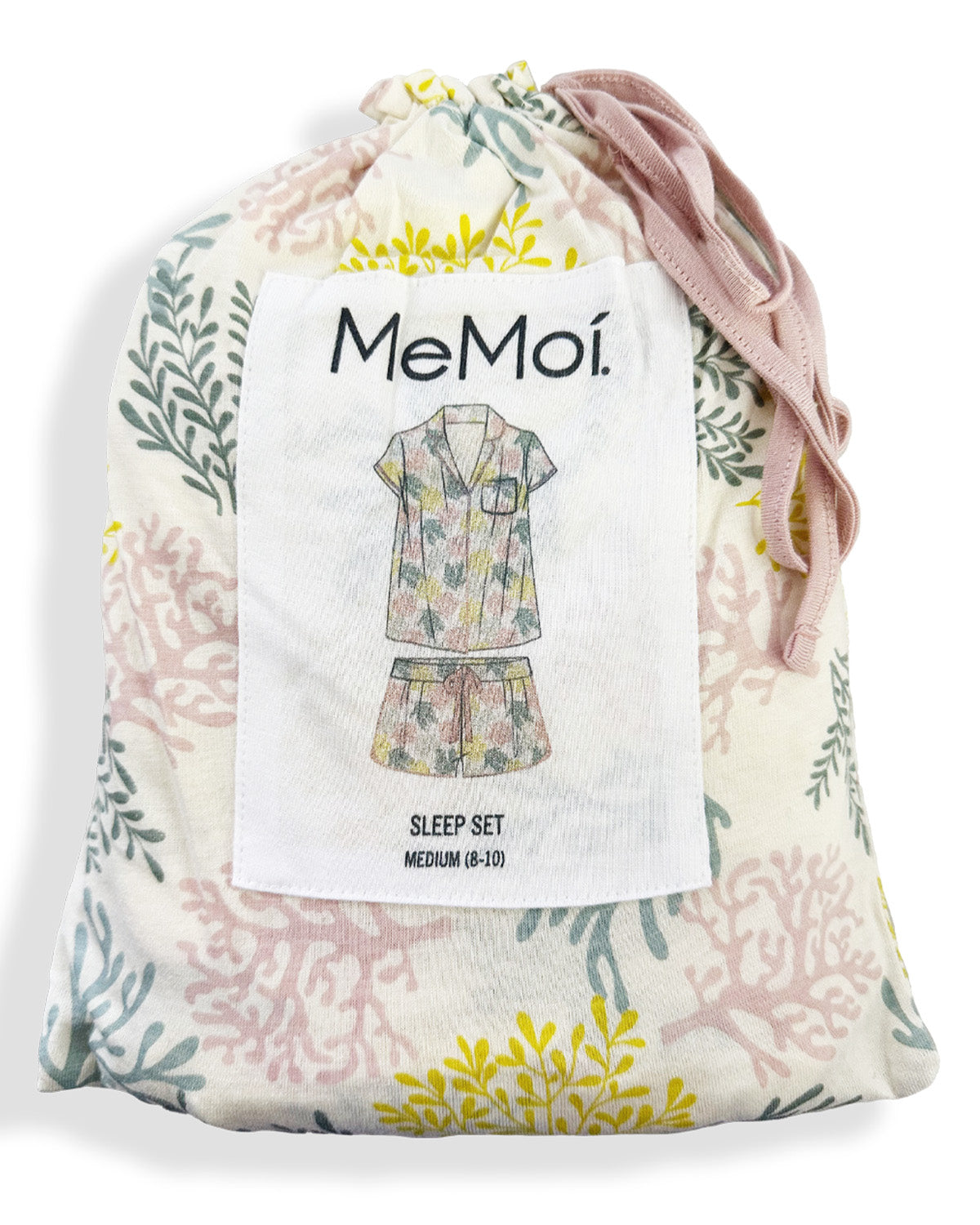 Give up sleepless nights, and get better zzz's in our Coral Reef Notch Collar PJ Set. Ultra soft cotton and rayon yarns are woven together to create a timeless silhouette. Featuring a silky smooth and breathable button front top with short sleeves and a single chest pocket, and short bottoms that are flattering, lightweight, and finished with a classic contrast piping trim detail. Designed with an adjustable and stretchy drawstring waistband that's ideal for napping, relaxing, and everything in between. Built to last, enhanced knit prevents pilling so you can enjoy these from season to season. They come in a coordinating drawstring bag for easy gifting and transportation.P.S. This set might make it difficult to get out of bed in the morning.