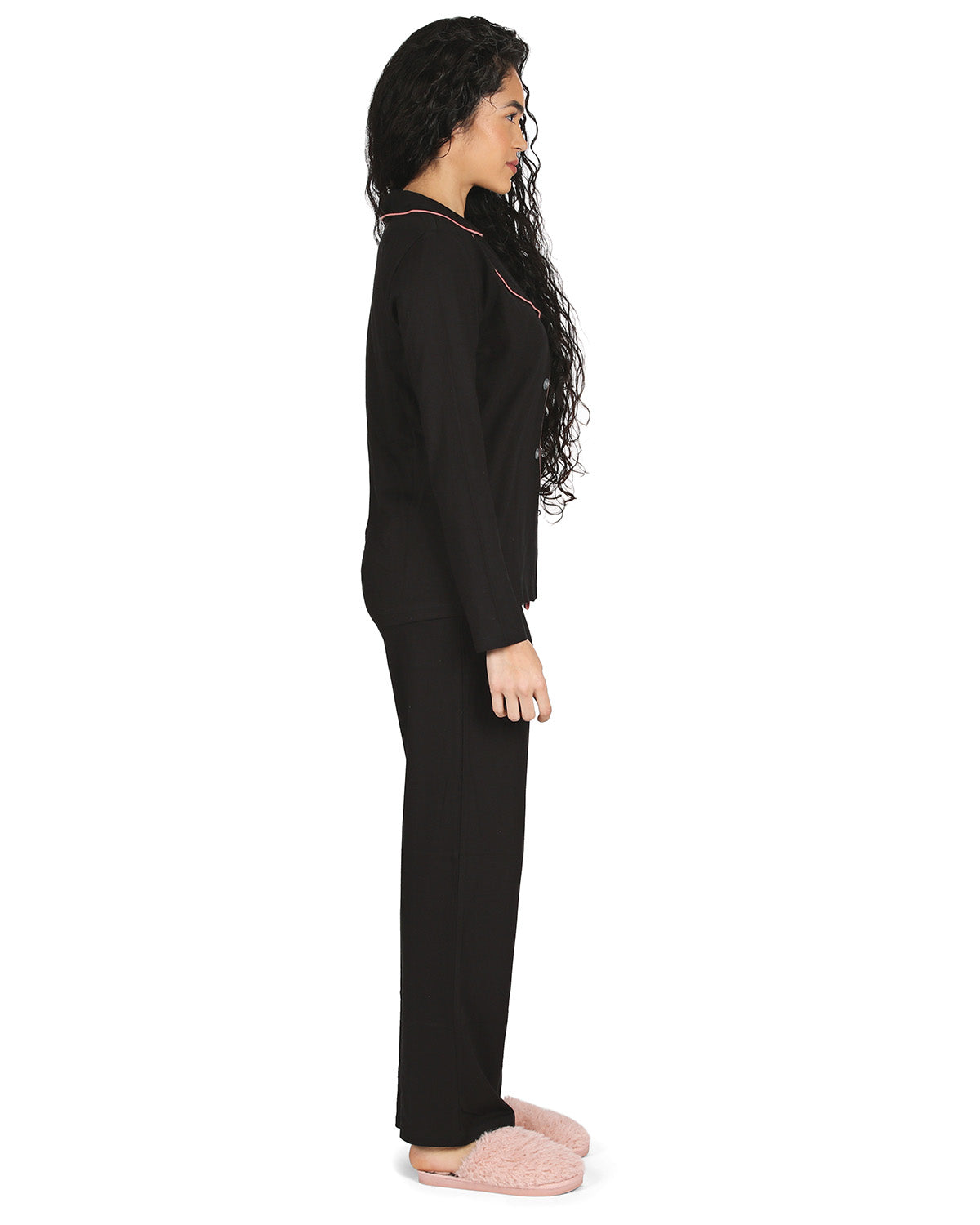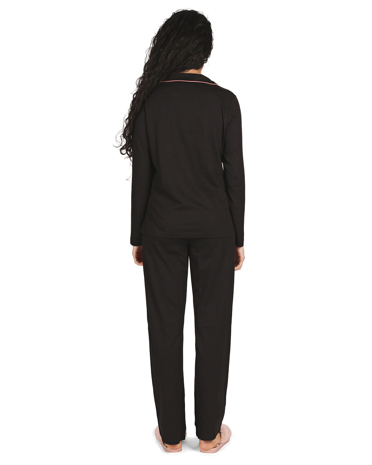 Women's Notch Collar Cotton Blend Pant Pajama Set