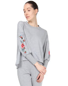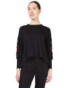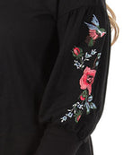 Women's Oversized Dropped Sleeve Top with Ribbed Cuff and Embroidery