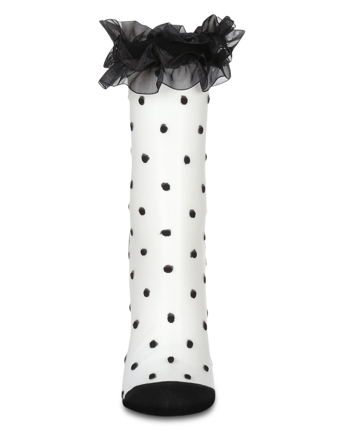 Women's Polka Dot Ruffle Lace Cuff Sheer Crew Socks