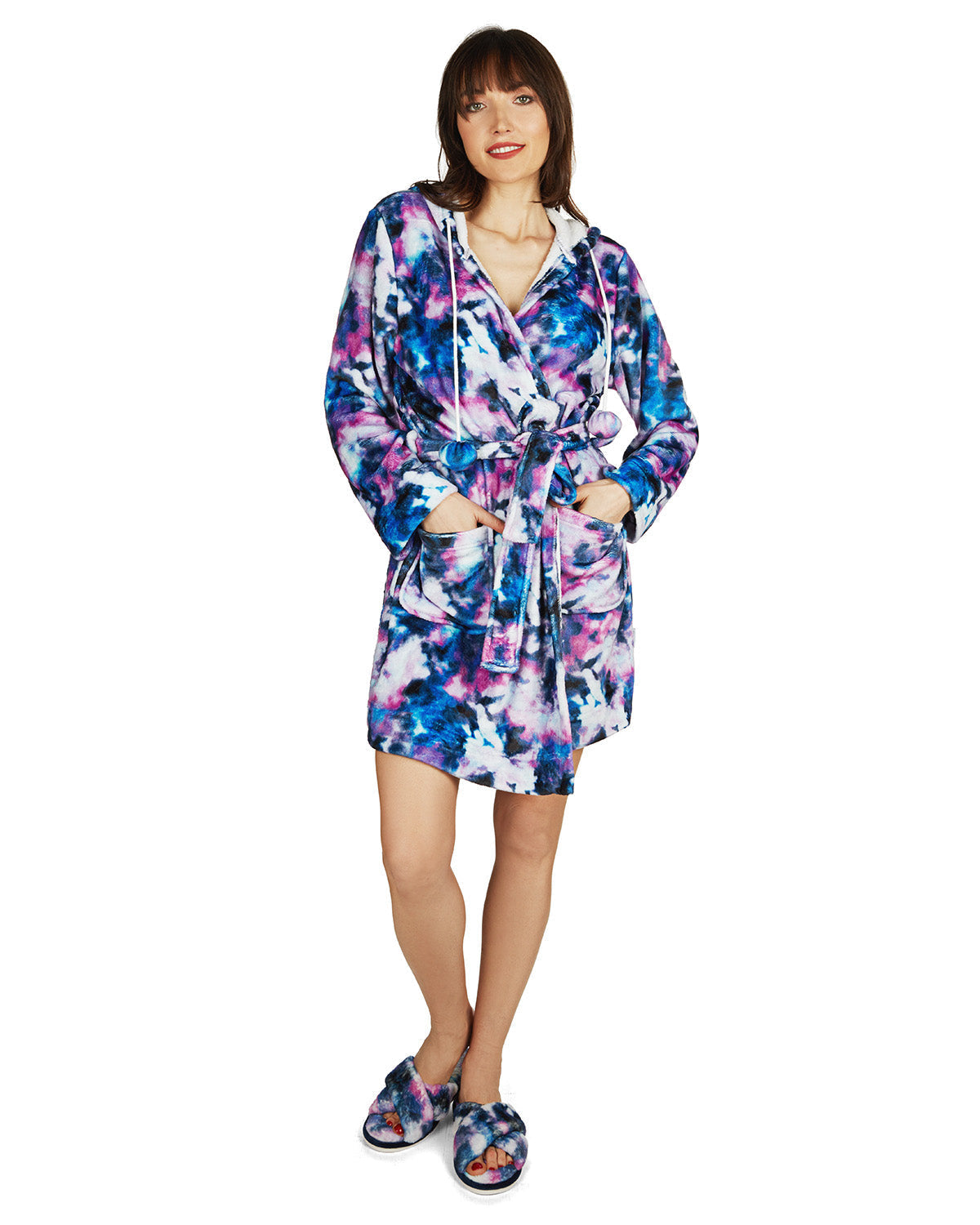Women's Stardust Galaxy Tie Dye Plush Hooded Robe