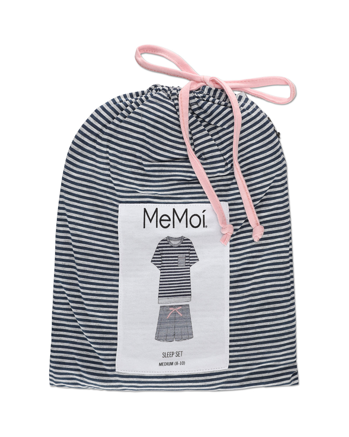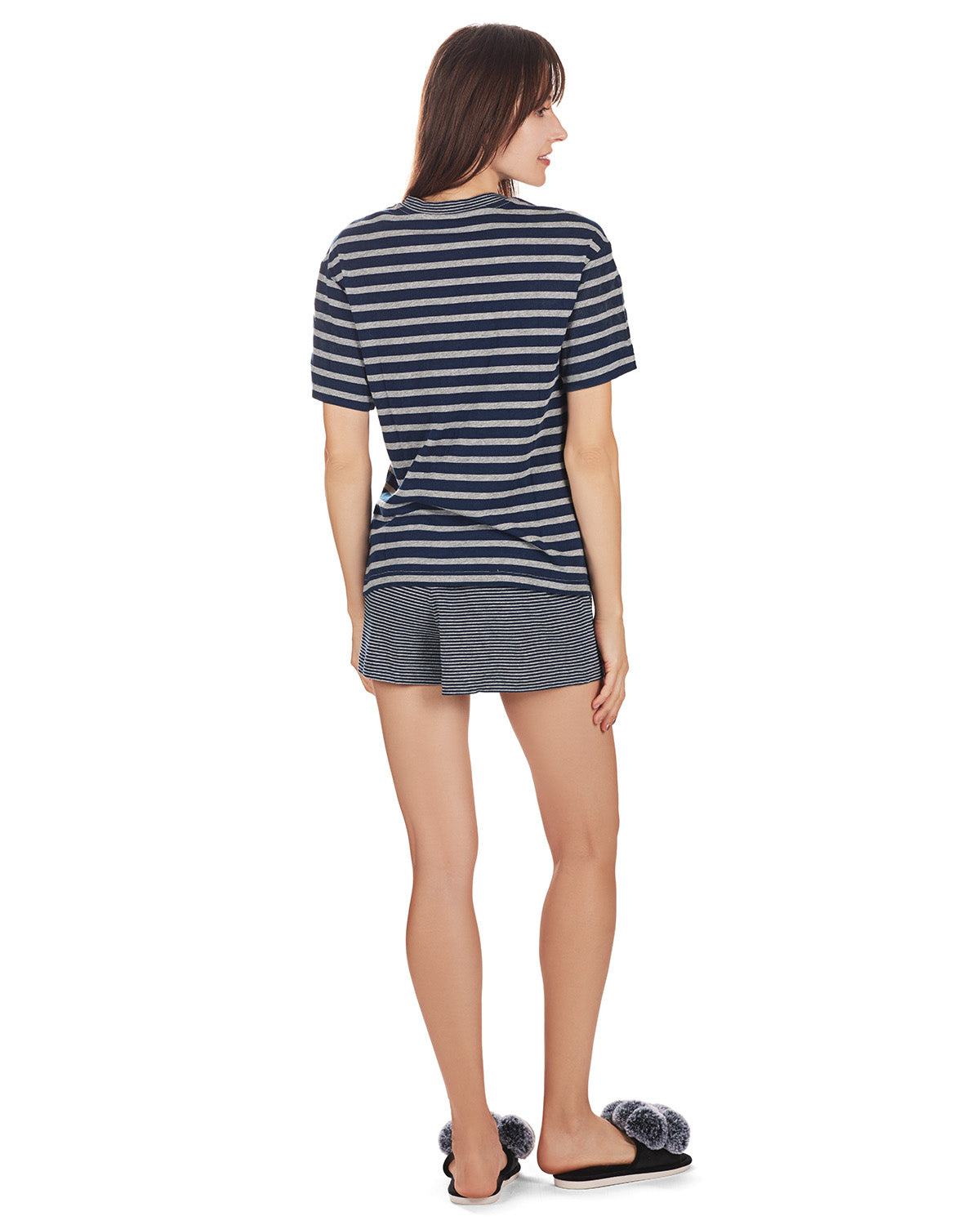 Give up sleepless nights, and get better zzz's in our Stripe Tee Cotton Blend PJ Set. Ultra soft cotton and rayon yarns are woven together to create a timeless silhouette. Featuring a silky smooth and breathable crew neck top with short sleeves, and short bottoms that are flattering, lightweight, and finished with a classic contrast piping trim detail. Designed with an adjustable and stretchy drawstring waistband that's ideal for napping, relaxing, and everything in between. Built to last, enhanced knit prevents pilling so you can enjoy these from season to season. They come in a coordinating drawstring bag for easy gifting and transportation.P.S. This set might make it difficult to get out of bed in the morning.