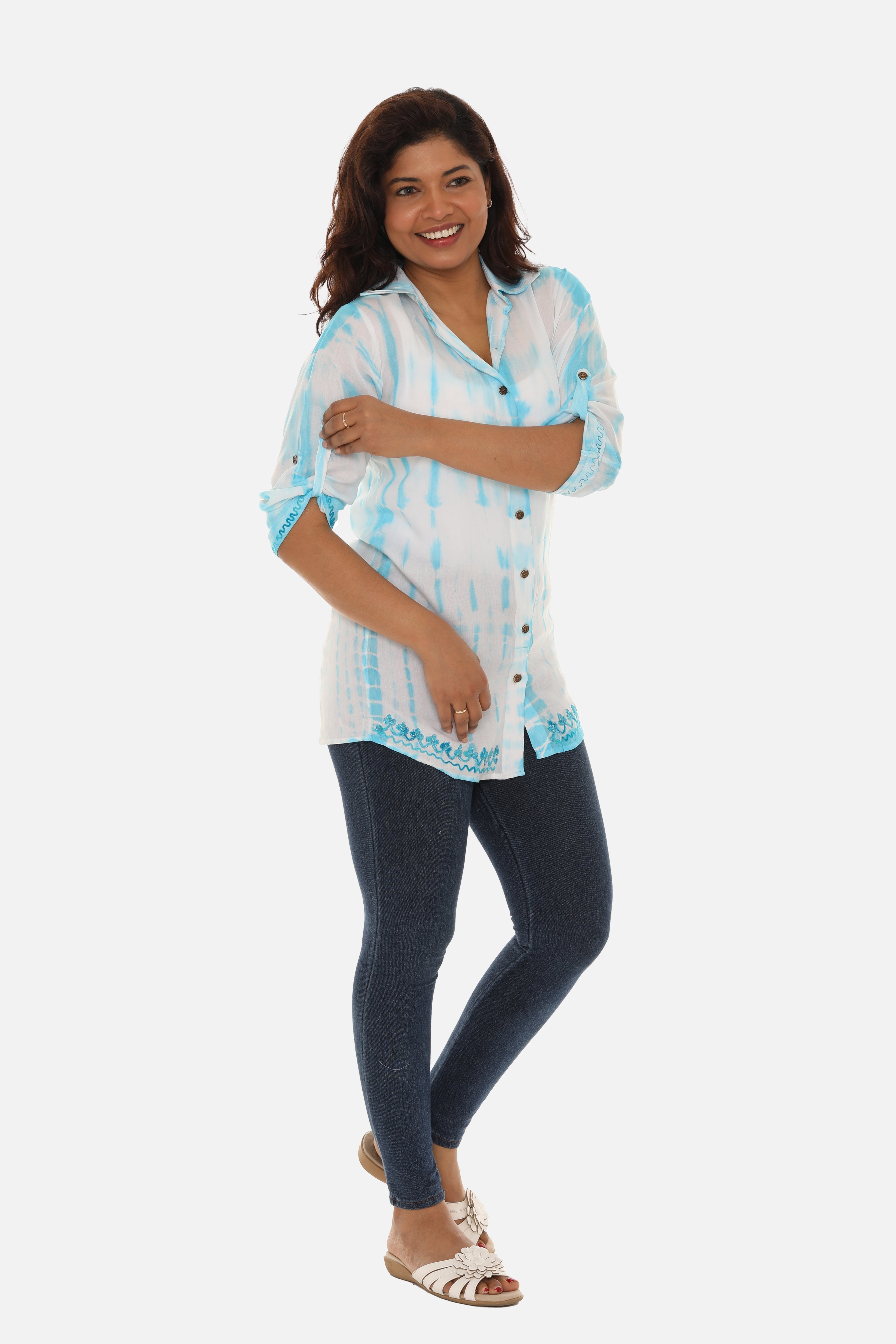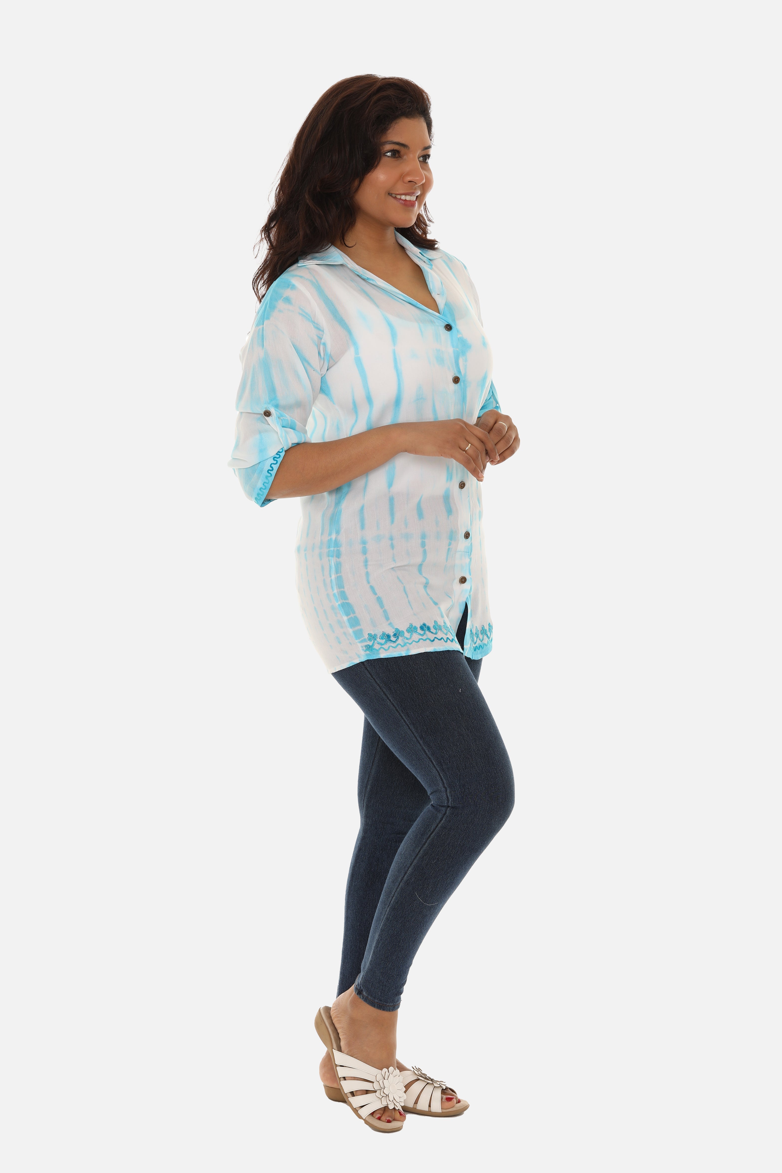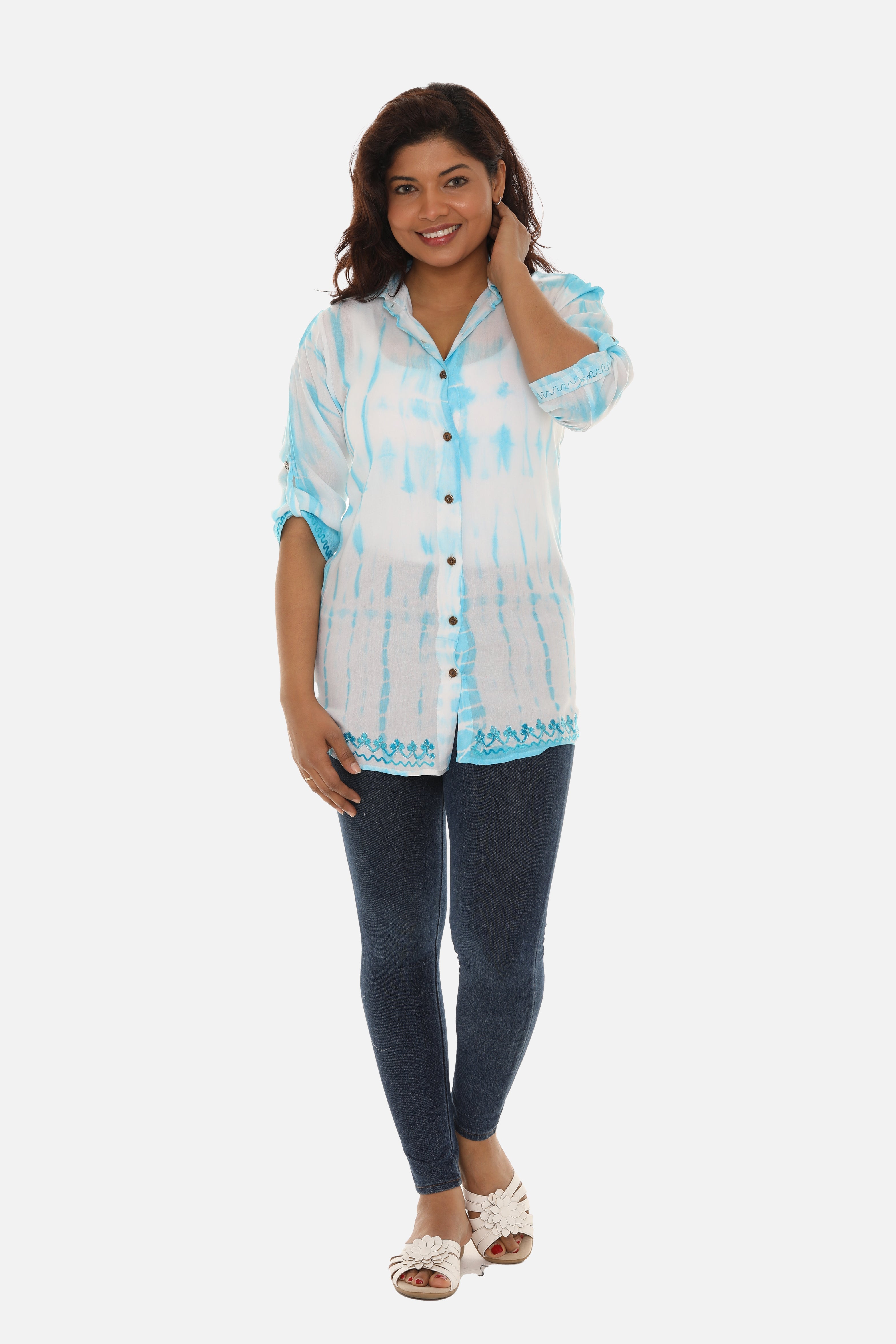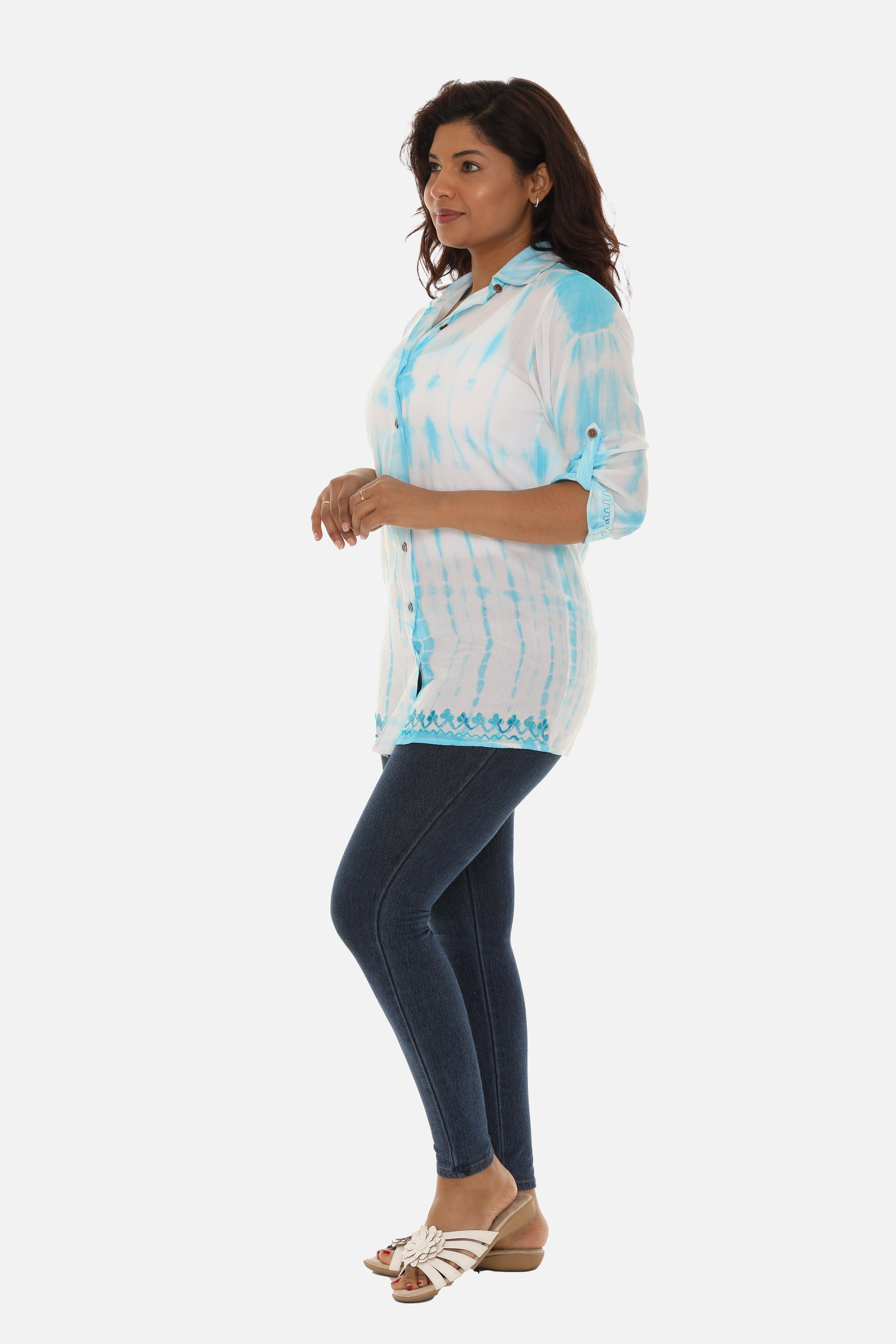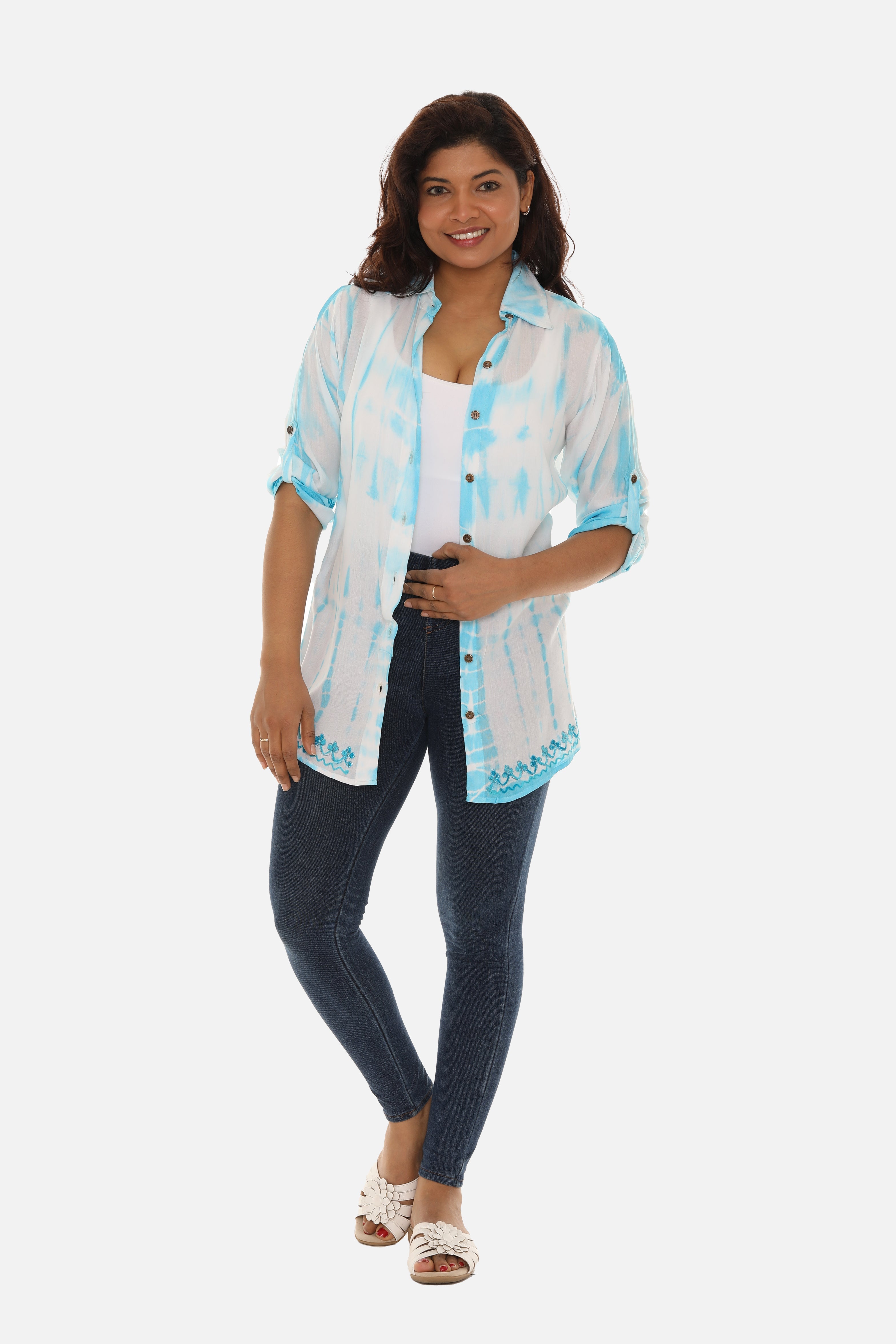 Pair it with your favorite jeans or shorts for a casual, laid-back look, or dress it up with a skirt or dress pants for a more polished look. Whether you're running errands, going to a picnic, or just hanging out with friends, our Women's Tie Dye Button Down Shirt is the perfect choice for any occasion.