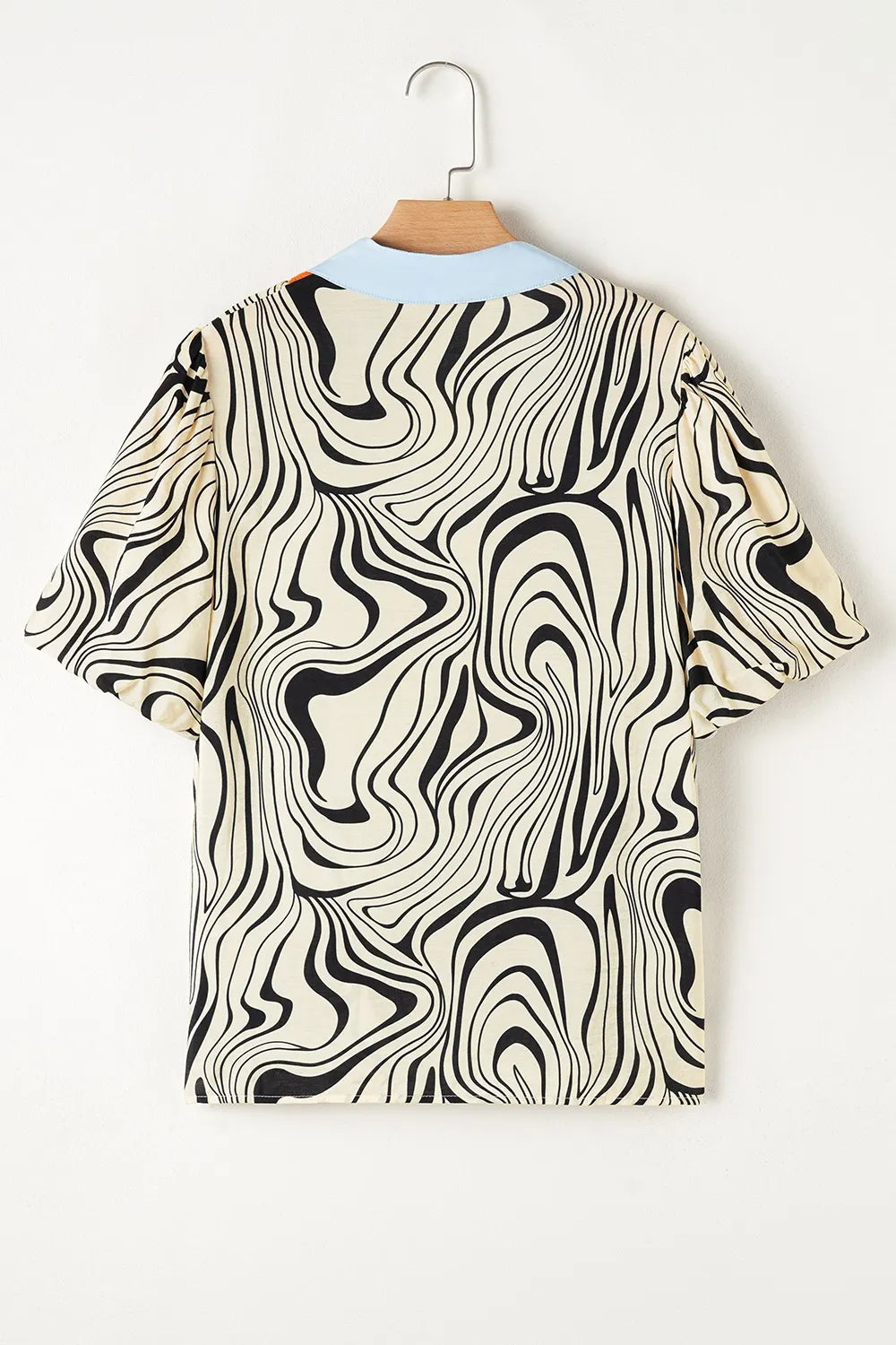 Zebra Stripe Print Contrast V-Neck Ricrac Detail Short Sleeve Blouse Top