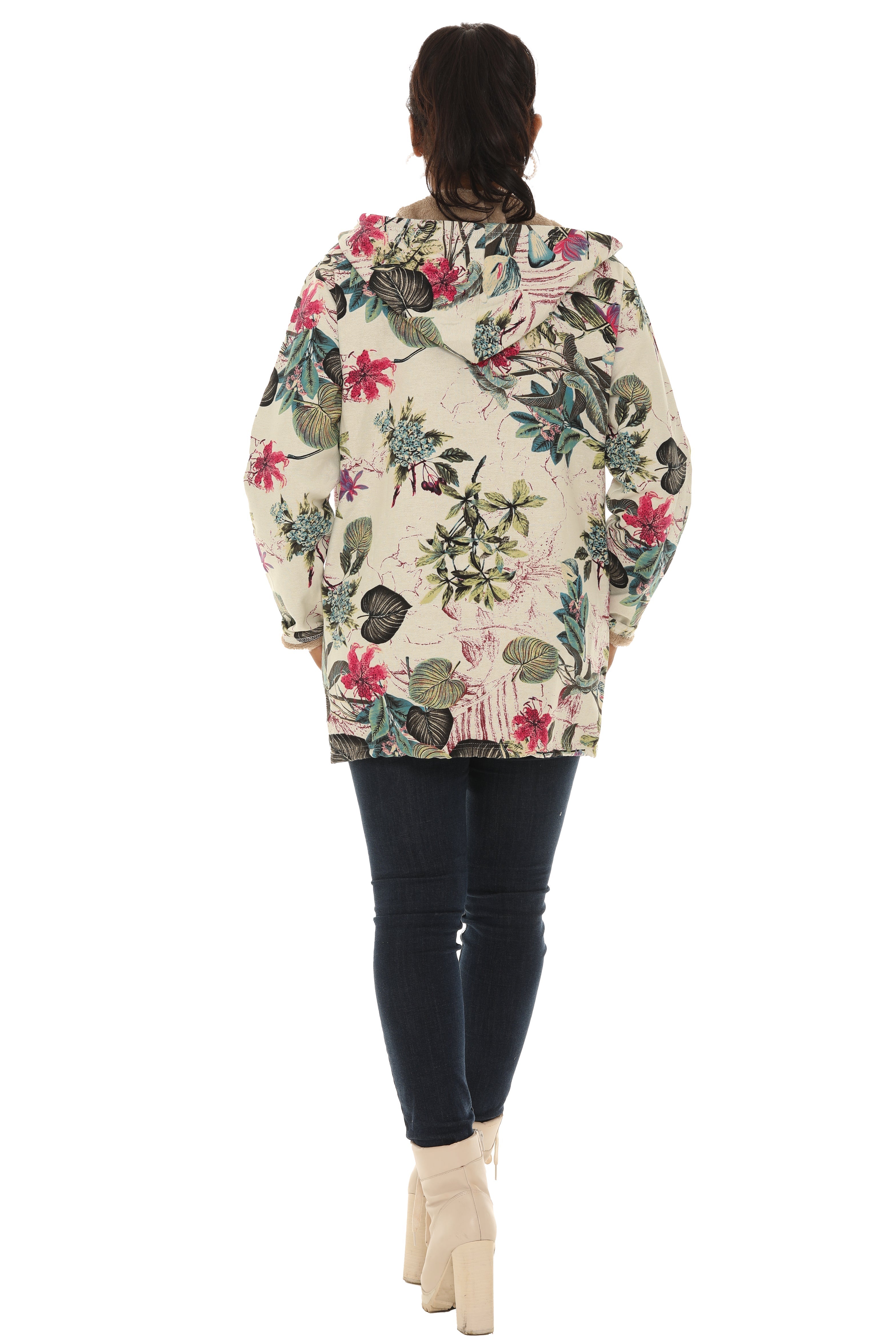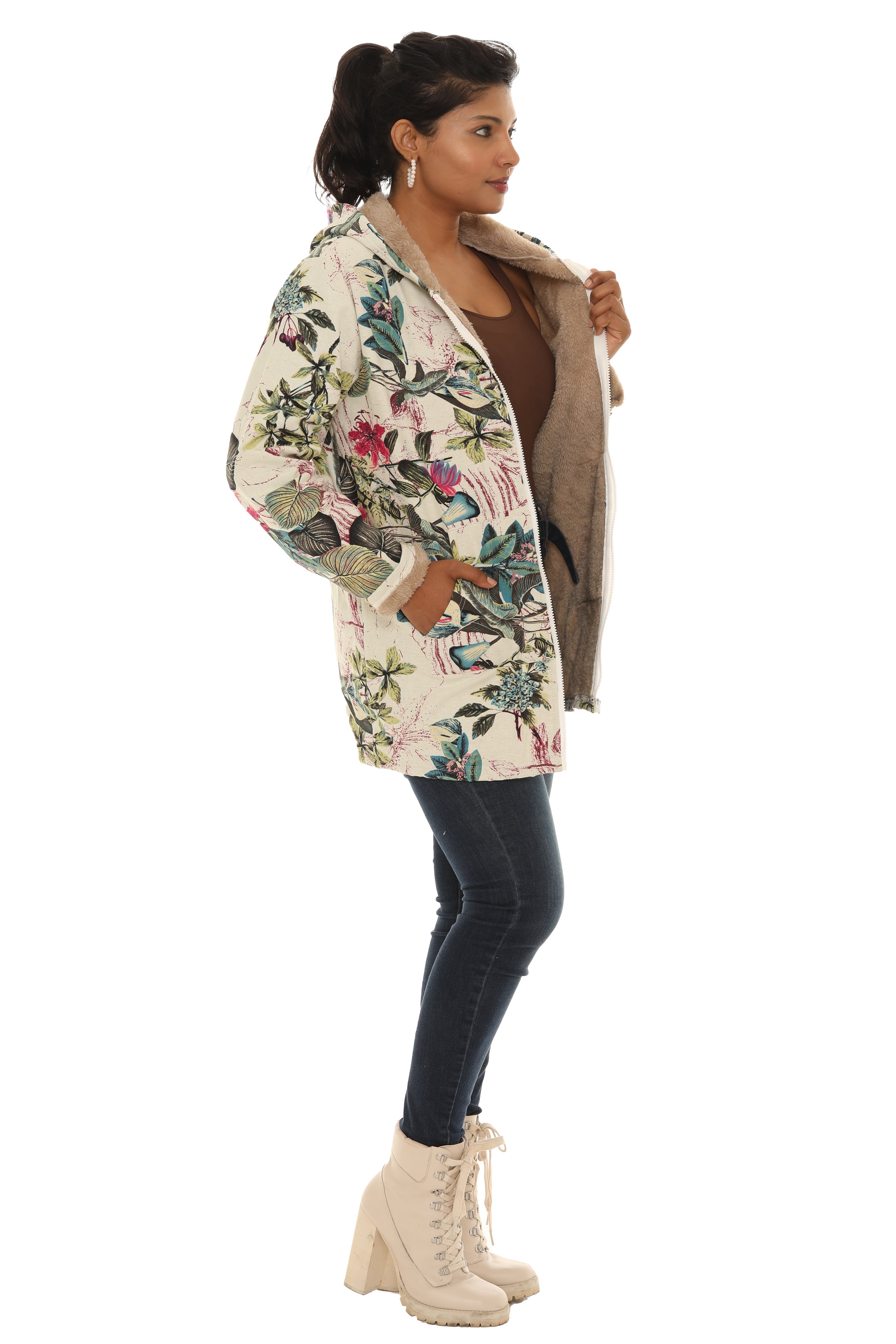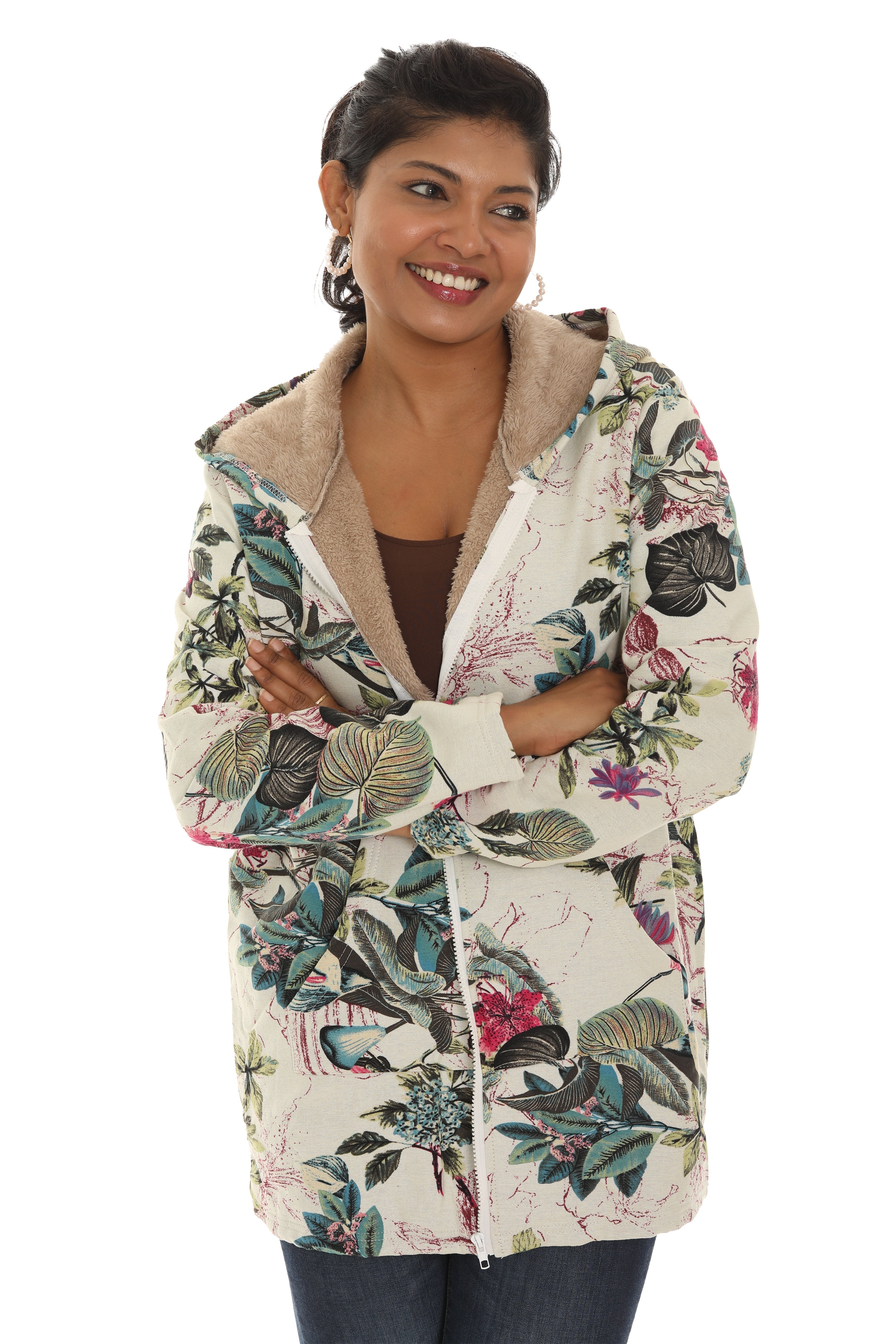 Zip-UP Leaf Print Fur Lined Hoodie Jacket