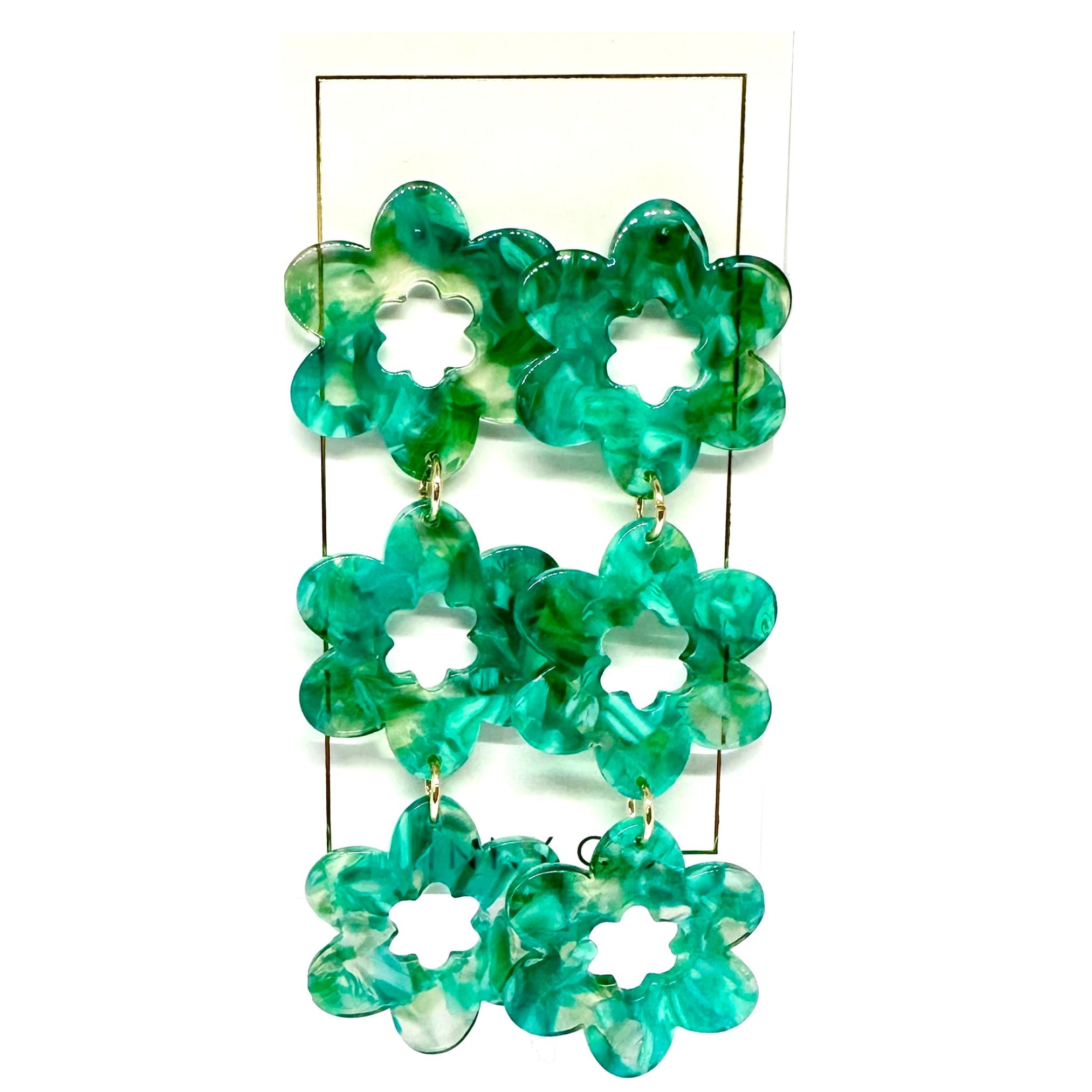 Introducing Zoey, a stunning and sophisticated accessory that will elevate any outfit. These earrings feature three delicate flowers, each handcrafted with intricate detail and finished with a polished shine.
